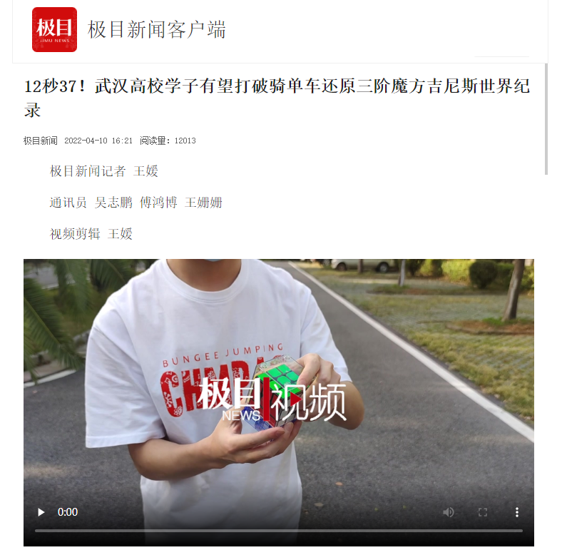 本网讯 12秒37!bwin必赢中国官网学生陈新运,打破了印度少年在“在自行车上复原三阶魔方”14秒32的最快吉尼斯世界纪录。该挑战结果将在提交相关视频材料约八周后,由吉尼斯世界纪录官方审核公布。