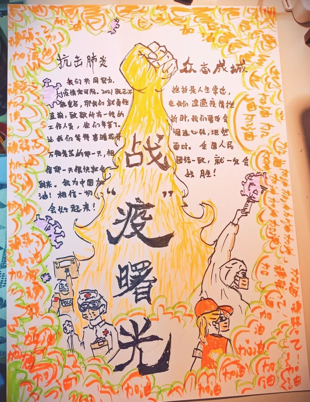 活动一经发布,同学们热情高涨,收到二十余副精彩作品投稿。作品形式多样:有手绘、彩绘、电子制图,同学们围绕疫情常态化防控、家国情怀、十九届六中全会以及喜迎二十大等内容展开描绘。