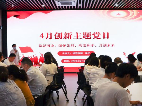 本网讯 4月28日下午,经济学院“铭记历史、缅怀先烈、珍爱和平、开创未来”主题党日活动在我校智慧党建中心举行。活动由经济学院党员教师李红主持,经济学院教师党支部、学生党支部全体党员参加。