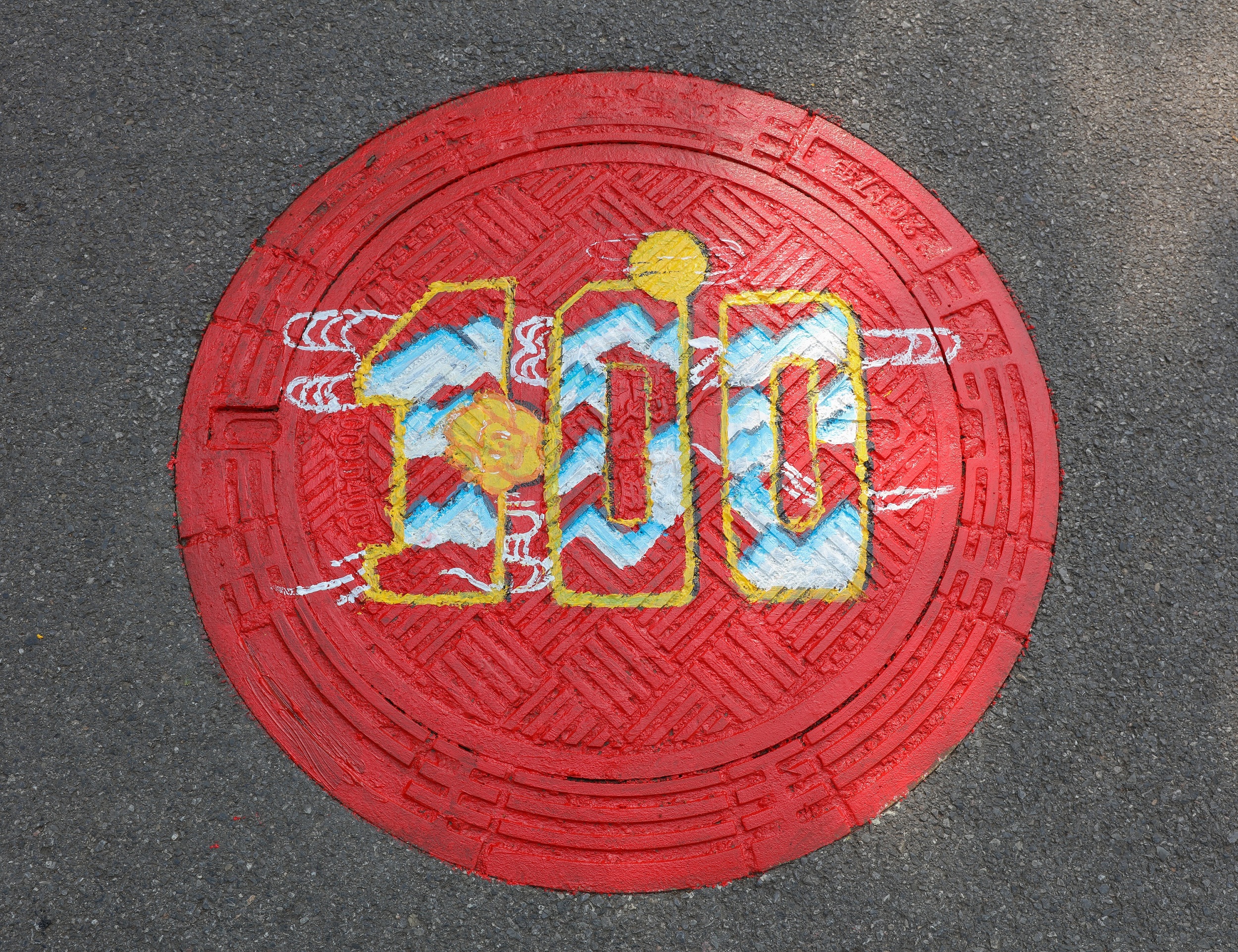 由48名艺术学院学生组成的绘画志愿者队伍利用周末的空余时间为校园井盖添上新的色彩。为防止绘画被雨水冲掉,绘画志愿者们特意采用丙烯作画。此次活动紧扣二十大的召开,绘画主题包括“中国梦——建团一百年”、“致敬白衣天使”、“冬奥冰墩墩”等。《致敬白衣天使》紧扣疫情的时代背景,以井盖为幕布,通过“医生”、“护士”、“病毒”等描绘医生护士与新冠疫情斗争的场景,向医护人员致敬,展露出了同学们对疫情结束的期盼。《喜迎二十大》以红色为主基调,天安门广场上空飞过一群和平鸽,一方面反映了二十大的顺利召开,另一方面表达了人们对世界和平的向往与祝愿。