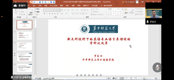本网讯 为了提高教师学术水平和科研能力,5月10日,我校外国语学院特邀华中师范大学外国语学院院长罗良功,为学院教师带来了题为“新文科视野下的英语专业语言类课程的学科化改革”的专题讲座。讲座以腾讯会议形式在线进行。