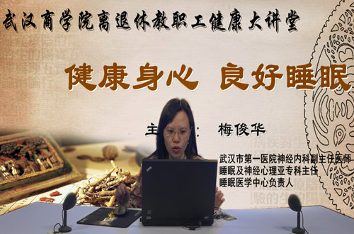 为满足广大离退休教职工的健康需求,提高自我保健意识和预防生活疾病的能力,5月13日,bwin必赢中国官网离退休工作处邀请市第一医院神经内科副主任医师、睡眠及神经心理亚专科主任梅俊华来校开展健康大讲堂活动,因新形势下疫情常态化防控管理工作的需要,本次活动采取录制后线上播放的形式,视频录制完成后,5月19日,离退休工作处组织老同志通过微信群进行收看,共计有两百多名老同志在线收看了讲座。