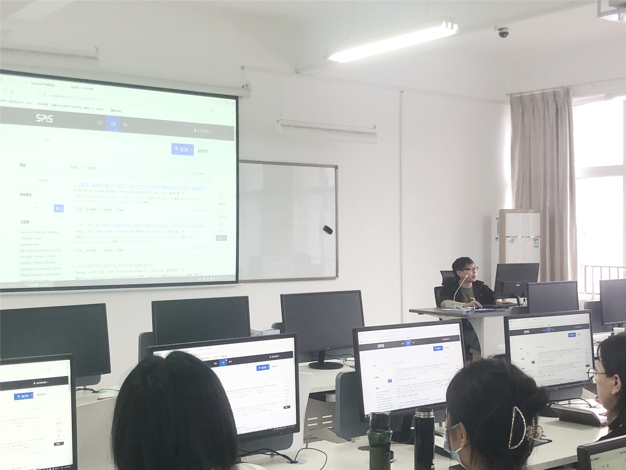纬度科技有限公司讲师洪长翔利用现场演示的方式,通过对纬度系列数据库演示讲解,辅以文献类型、核心收录、专业检索的科普,增强教师对于文献的辨识、获取最新科研成果的能力,同时通过分析期刊发文主题,揭示期刊研究方向及研究热点,帮助教师科学选择投稿刊物。活动最后还设置了互动环节,新进教师和主讲教师进行了更加深入地互动交流,现场气氛热烈融洽,当场有26位老师加入图书馆文献互助群。