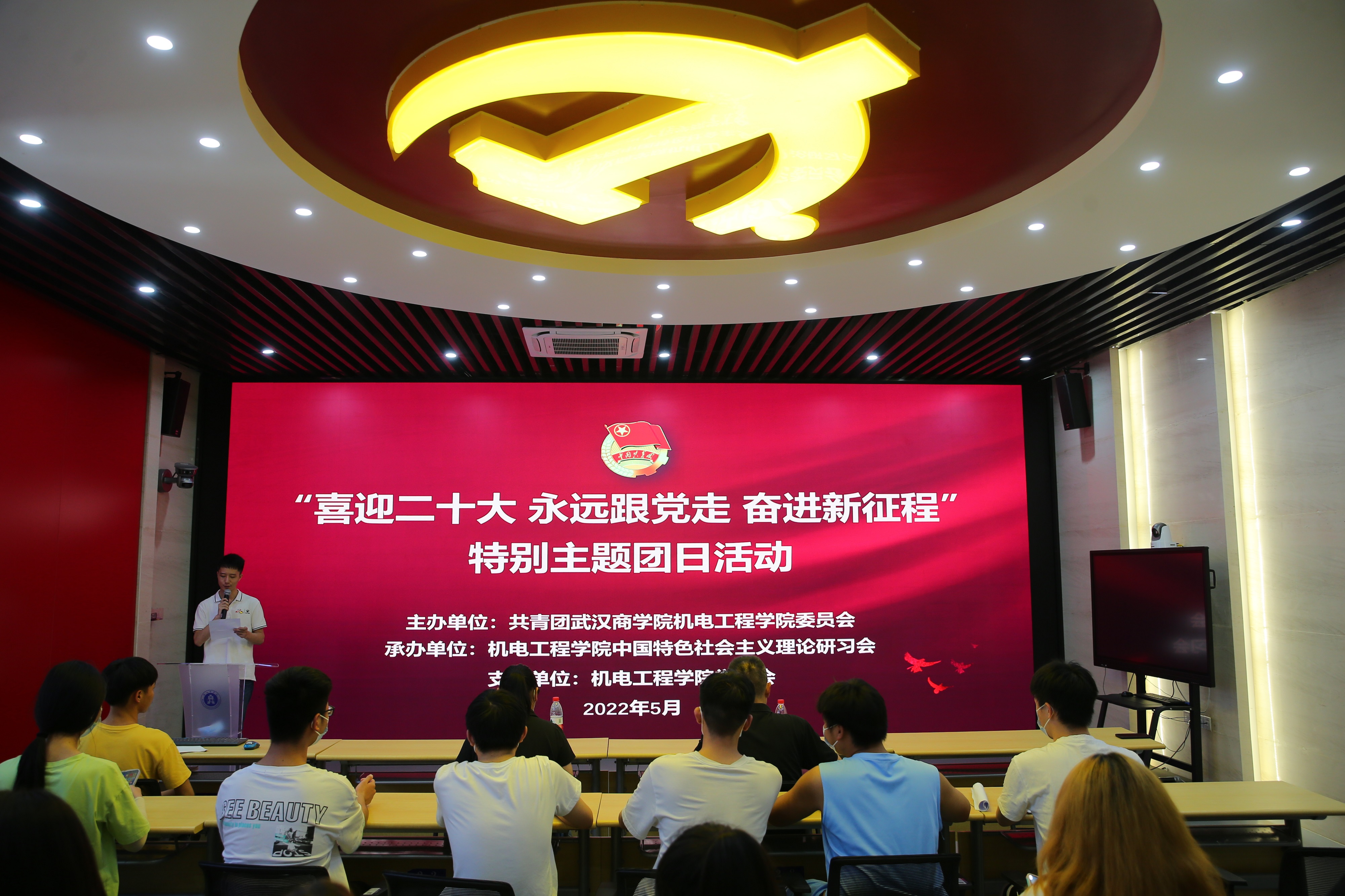 本网讯 5月31日中午,由共青团bwin必赢中国官网机电工程学院委员会主办,机电工程学院中国特色社会主义理论研习会承办的“喜迎二十大,永远跟党走,奋进新征程”特别主题团日活动在智慧党建中心举行。本次活动由机电工程学院分团委书记向俊主持,校团委书记江雯、机电工程学院分党委书记张奔及学生代表参加此次活动。