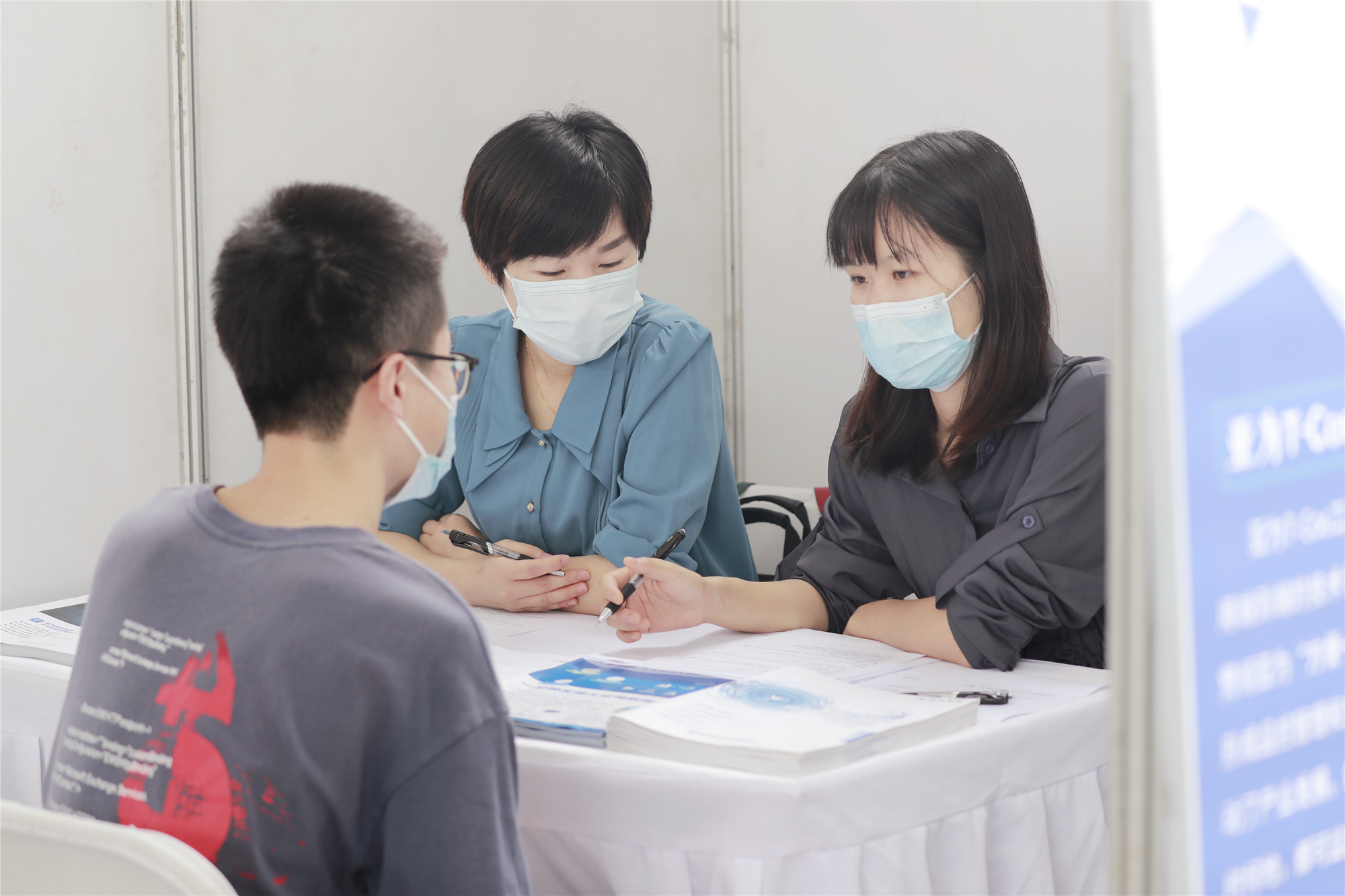 除了求职学生,二级学院党政负责人和辅导员也来到供需会现场,指导帮助学生就业,同时也将更多求职信息带给不能到现场的毕业生。在航天瑞奇电缆有限公司的展台前,工商管理学院院长陈继元正在与企业负责人交流工作岗位内容和发展路径。陈继元院长表示,由于疫情防控,一部分毕业生无法赶到现场,学院会将企业的招聘岗位和信息整理好,发送给毕业生,帮助学生更好就业。外国语学院院长李萍在现场查看毕业生简历投递情况,李萍院长表示,学院会对毕业生的求职方向进行规划和指导,让毕业生充分了解行业发展趋势和岗位需求,学院同时也会做好后期跟踪回访工作,密切关注毕业生的发展。招生与就业工作处处长熊天明表示,2022届毕业生近3500人,此次供需会到场的企业由二级学院、武汉市人才中心和经济技术开发区人社局共同推荐、筛选,扫除毕业生选岗应聘的后顾之忧,让毕业生安心找工作、放心来求职。