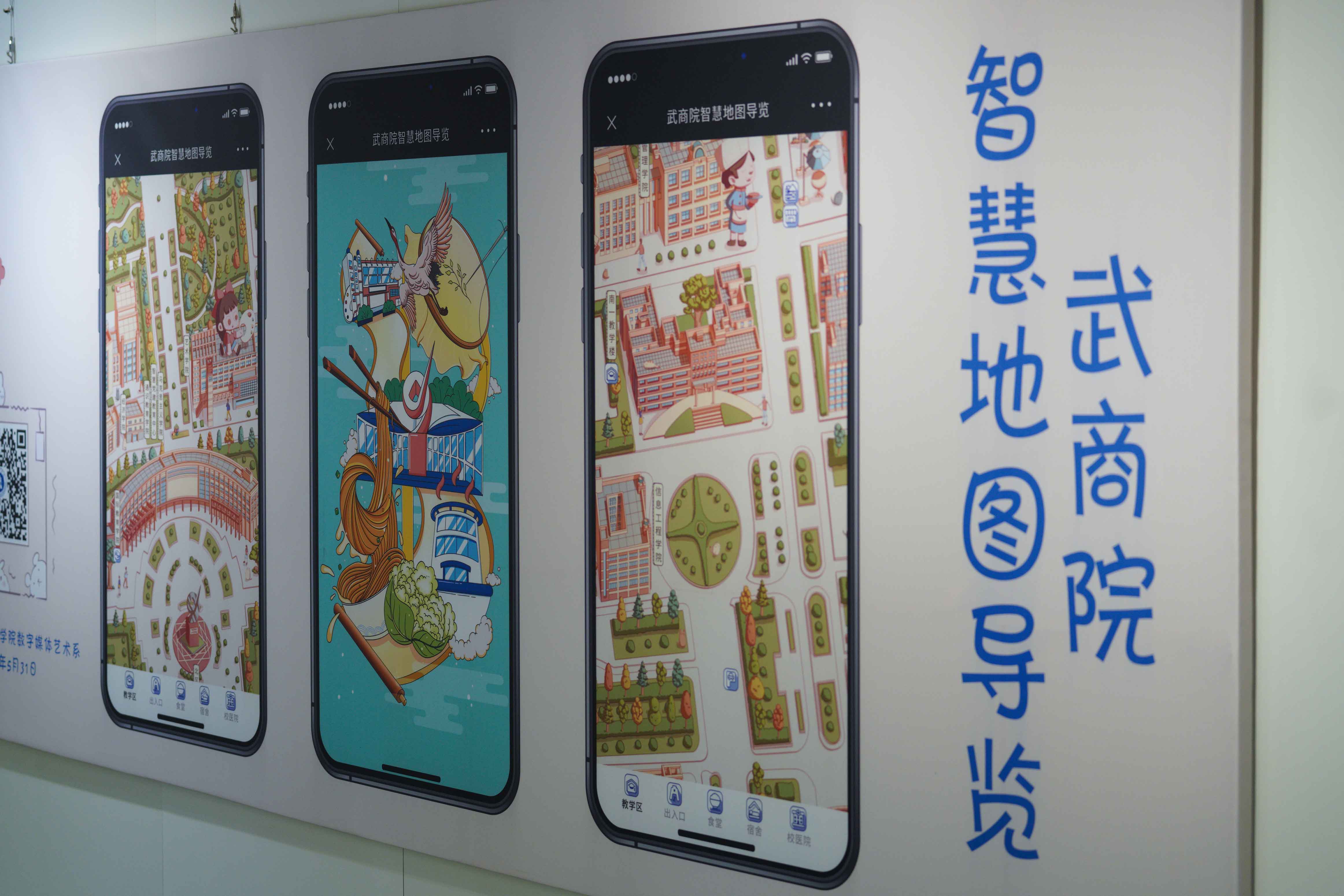 本网讯 5月31日,由我校艺术学院数字媒体艺术专业举办的bwin必赢中国官网智慧地图导览及文创作品展览在艺术学院一楼开展。本次展览为数字媒体艺术专业首届学生在专业教师指导下策划的学习成果汇报展,开放时间为5月31日至9月31日,对全校师生开放。