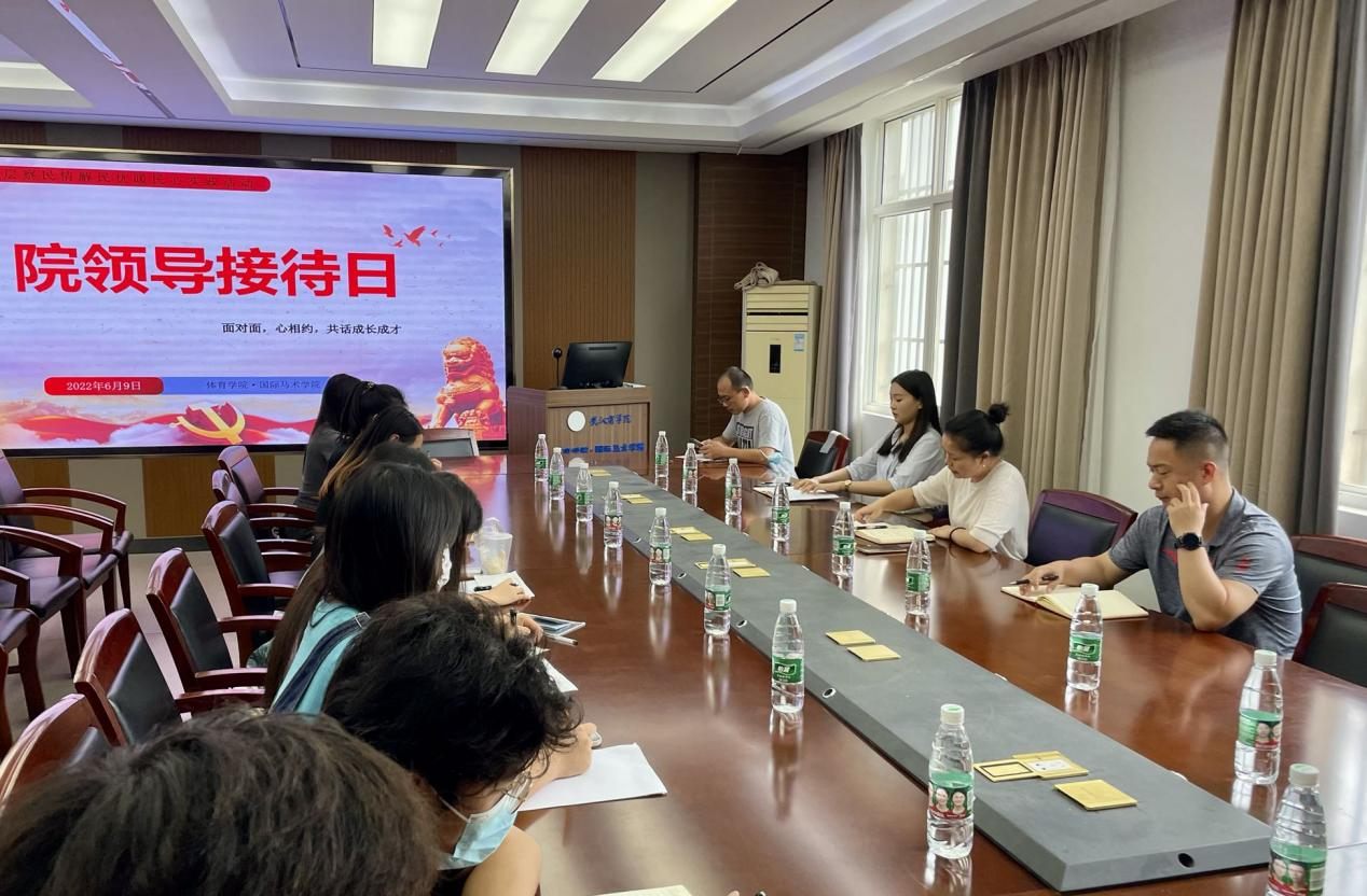 “院领导接待日”是体育学院深入推进党员干部下基层察民情解民忧暖民心实践活动的一项举措,是学院领导贴近师生、听取师生意见的基层服务活动,也是学院提高服务质量和管理水平、加强作风建设的有效途径,将为全院师生建立更加通畅的沟通渠道。