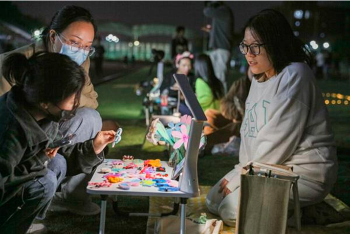 据了解,北区操场“夜集市”是该校学生自行组织举办的一种创新休闲方式,现累计有10余个摊位,商品种类达100多种。