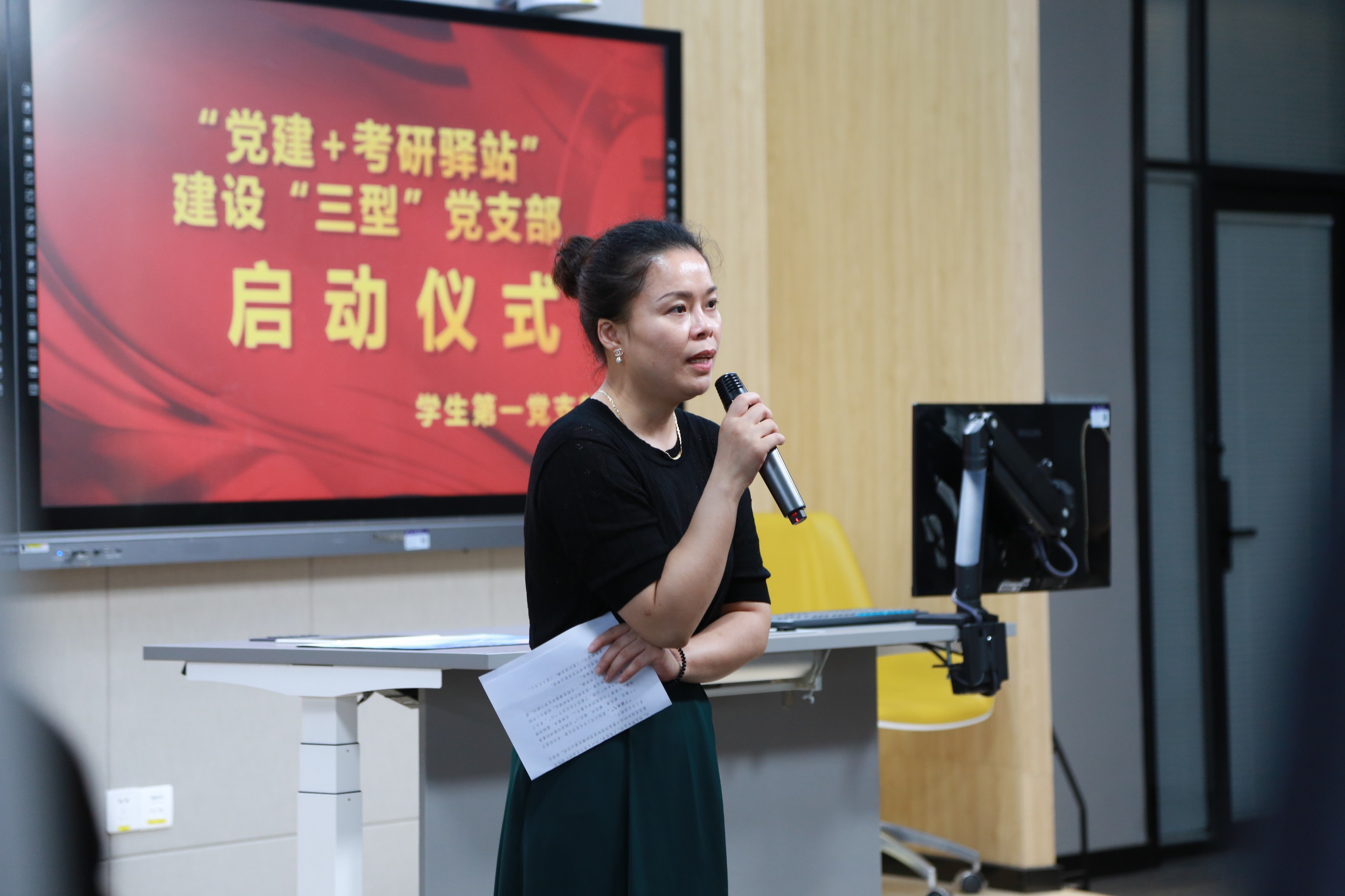 考研学生代表张风雅同学代表考研学生做了表态发言,通过“党建+考研驿站”活动,得到了考研指导老师的科学指导和规划,考研目标更加明确,专业复习更加有效,争取在考研的赛道上跑出bwin必赢中国官网体育人的风采。