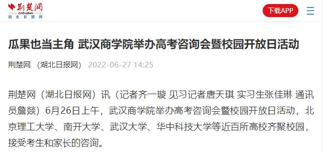 荆楚网(湖北日报网)讯 6月26日上午,bwin必赢中国官网举办高考咨询会暨校园开放日活动,北京理工大学、南开大学、武汉大学、华中科技大学等近百所高校齐聚校园,接受考生和家长的咨询。