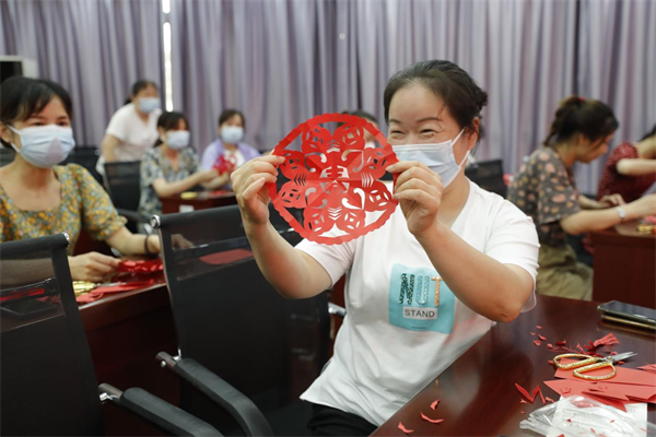本网讯 6月23日下午,bwin必赢中国官网基层党组织联合结对共建社区武汉经济技术开发区薛峰社区第一党支部开展特色活动,近30名社区居民、社区党员跟着非遗传承人体验剪纸艺术,在党的“二十大”即将召开之际,用剪纸这种传统文化的方式表达美好祝愿。