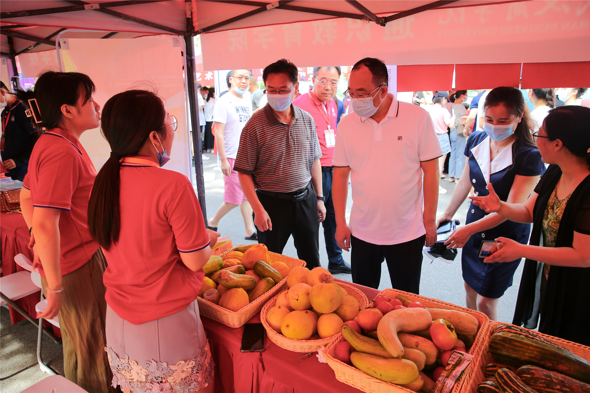 活动现场,考生家长在展棚下络绎不绝,党委书记刘志辉、校长彭瑜、副校长刘佳霓等一行领导班子和招生与就业工作处全体一同积极热情向考生及家长推介我校。我校通识教育学院邀请考生家长一同分享了我校师生社会实践劳动成果。