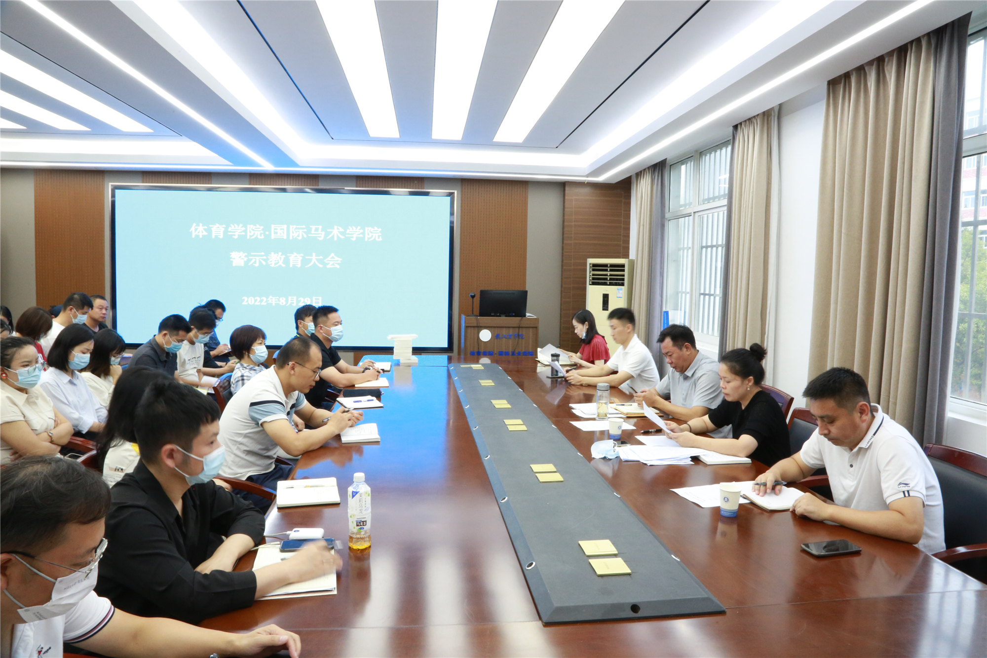 8月29日上午,体育学院·国际马术学院在北2-219会议室召开了2022年秋季教职工大会暨警示教育大会,会议由林桥兵主持。