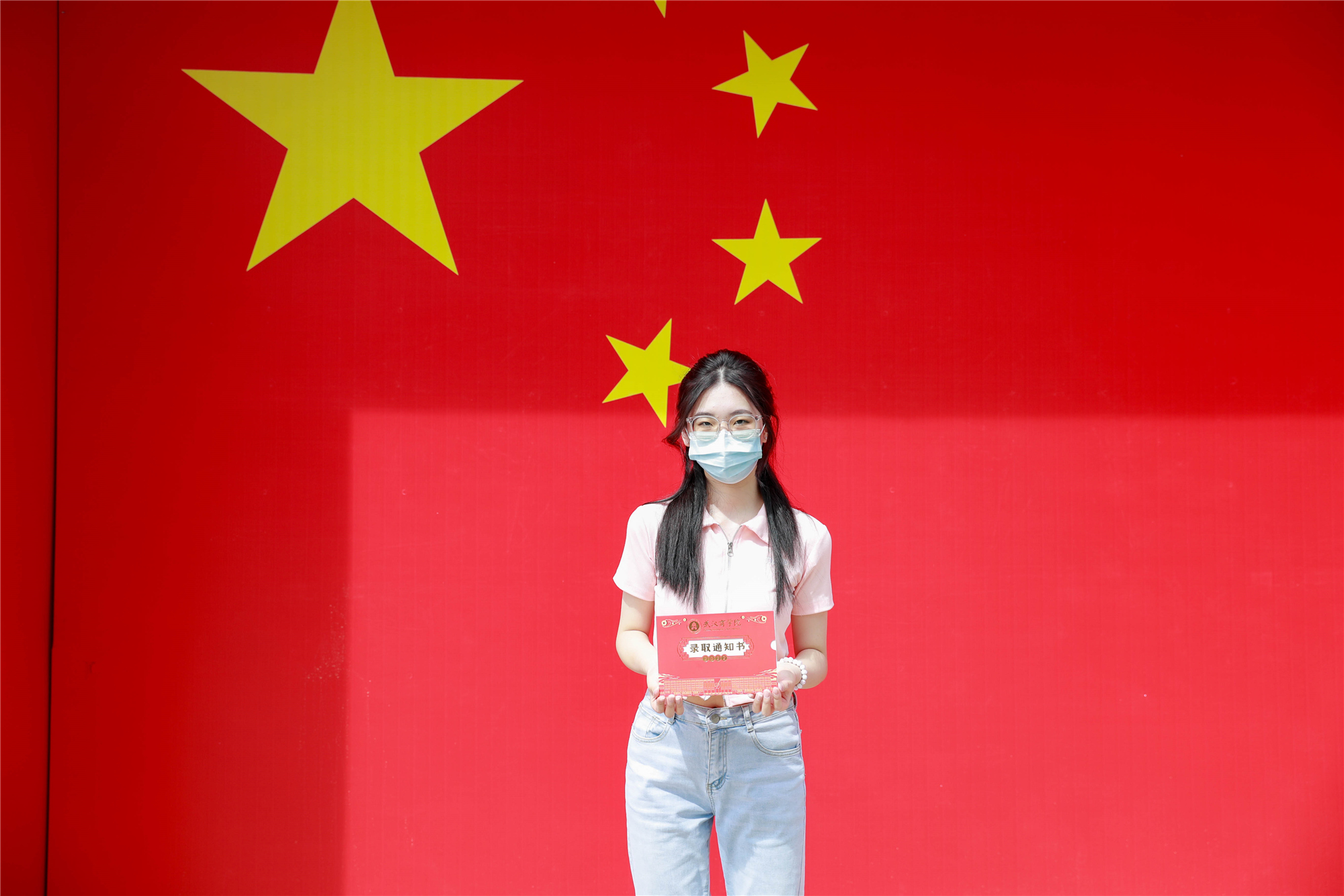 “学校很红,让人觉得很振奋!”2022级新生胡佳莹用一个“红”字描述学校给自己的第一印象。校园处处,我校精心装点的展板、吊旗方阵等红色迎新布置随处可见。在报到现场最东侧,我校设立了“我与国旗共合影”入学打卡点,不少完成报到手续的新生排队与国旗拍照。外国语学院商务英语专业的朱伊凡手拿录取通知书,请志愿者学姐帮她完成了在大学与国旗的第一张合影。除此以外,学校在新生入口处还设置了由1000面国旗组成的红色吊旗方阵。不少新生步入方阵下方,放慢脚步:“看到这样的红色挺感动的!”