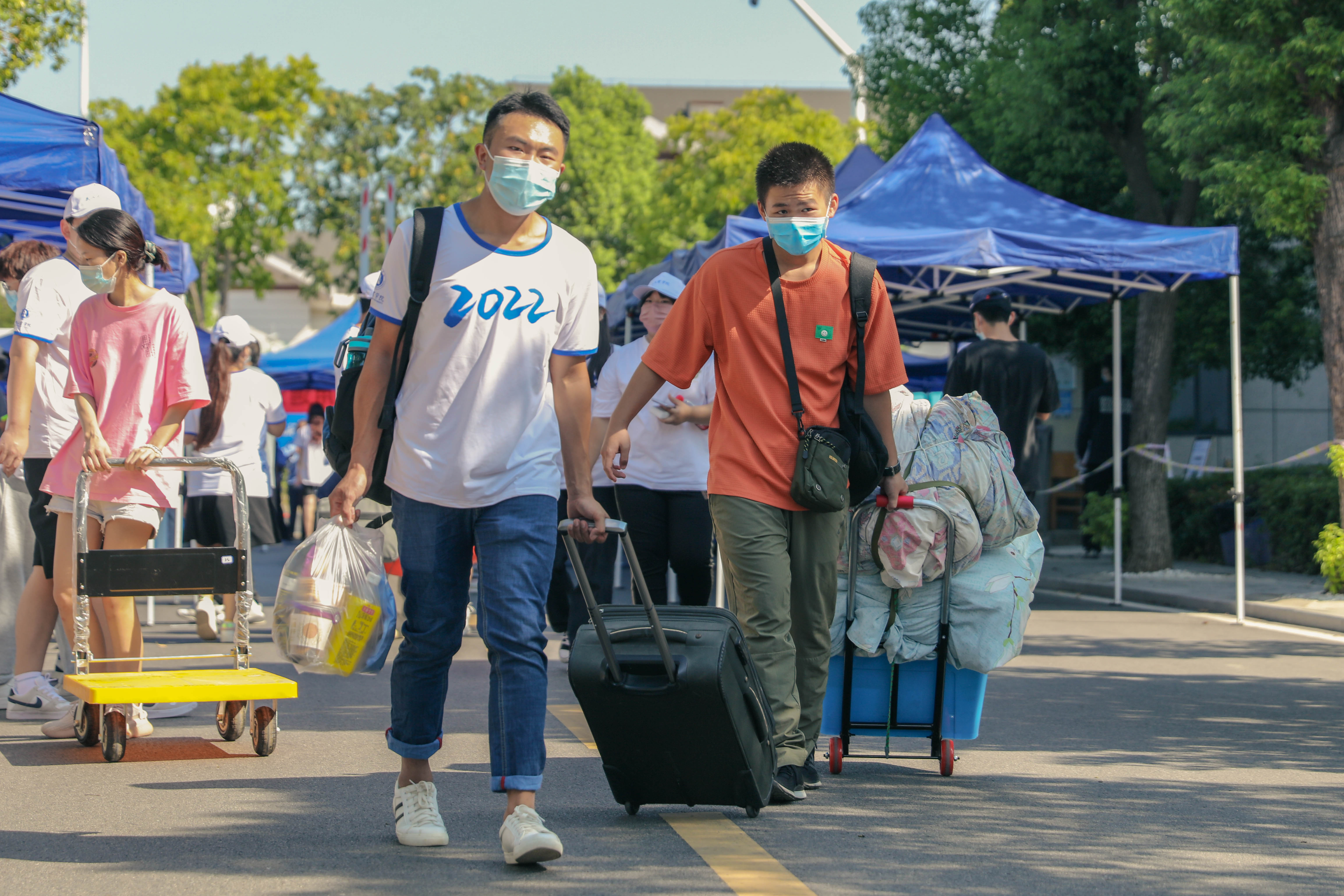 体育学院·国际马术学院的体育经济与管理专业新生王珈珑,体验到了学校准备的——助力新生“一站式”入住。刚进校门,等在门口的党员志愿者老师和学生志愿者们纷纷接过他手中的行李。吴昊、吴杰和袁野三位老师一边拿过行李放在推车上,一边和他介绍学校的情况,在宿舍楼下,老师们问过他的宿舍号后,拿起行李便奔楼上而去。王伽珑不禁感叹说,“一站式服务太便捷了,入住宿舍只花了不到10分钟!”不仅如此,来自襄阳的他还带了一件特殊的食物——家乡的卤菜和烧烤。王伽珑介绍,这是爸妈特地为他准备的,专门从襄阳带过来,“路程有3个小时,但卤菜很香,是家的味道。”王伽珑的爸妈希望他能好好照顾自己,以后有时间能多回家看看,家乡的味道一直等着他。