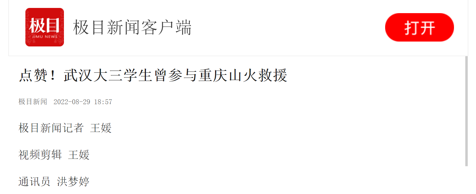 山火发生适逢重庆天气炎热,龙永超在救援途中还遇到一位参与救援的志愿者中暑晕倒在路边,其他志愿者见状,纷纷过来为他扇风,喂水。“当志愿者的过程不仅有‘热度’更有‘温度’。”龙永超说。