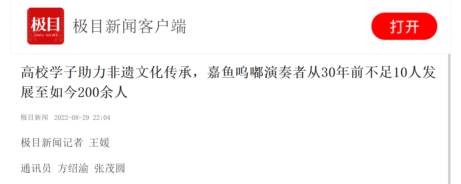 非物质文化遗产保护中心工作人员李俊表示:“中国非物质文化遗产是中华文化的瑰宝,也是人类文明的重要组成部分。我们一直在努力保护嘉鱼呜嘟的路上,很高兴有青年力量的加入。”一个多月来,暑期社会实践队走访了嘉鱼县8个镇,收集了近400份问卷。此次项目负责人熊阳阳直言:“这是我们家乡的名片,我不希望呜嘟消失掉,我相信大家也是。”她希望此次实践能让更多人认识了解嘉鱼呜嘟、喜爱呜嘟,进而萌发学习的兴趣,从而更好地传承下去。学校暑期社会实践队深入乡村基层,用行动在祖国大地上书写华章,把非遗传承的种子播撒在乡村田野,心怀希望,一路前行。