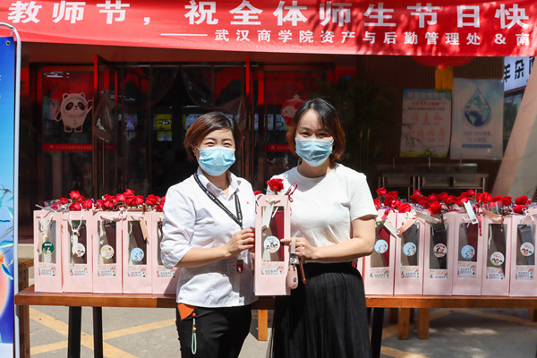 北区食堂门口,同学们井然有序的排起了队伍,在场的工作人员把这份饱含温情的月饼,一一发放到同学们手中,学校资产与后勤管理处处长王玉波也来到现场,亲自为同学们分发月饼,现场洋溢着浓浓的中秋节日氛围。北区食堂负责人汪经理表示:“希望圆圆的月饼能够为同学们带去节日的祝福,让同学们感受到家的温暖,恰逢教师节,我们为老师们准备了许多花束,里面包裹着月饼、玫瑰花和巧克力,祝贺我校教师双节快乐!”随后,汪经理与工作人员一同为核酸检测点的工作人员送去节日礼品。
