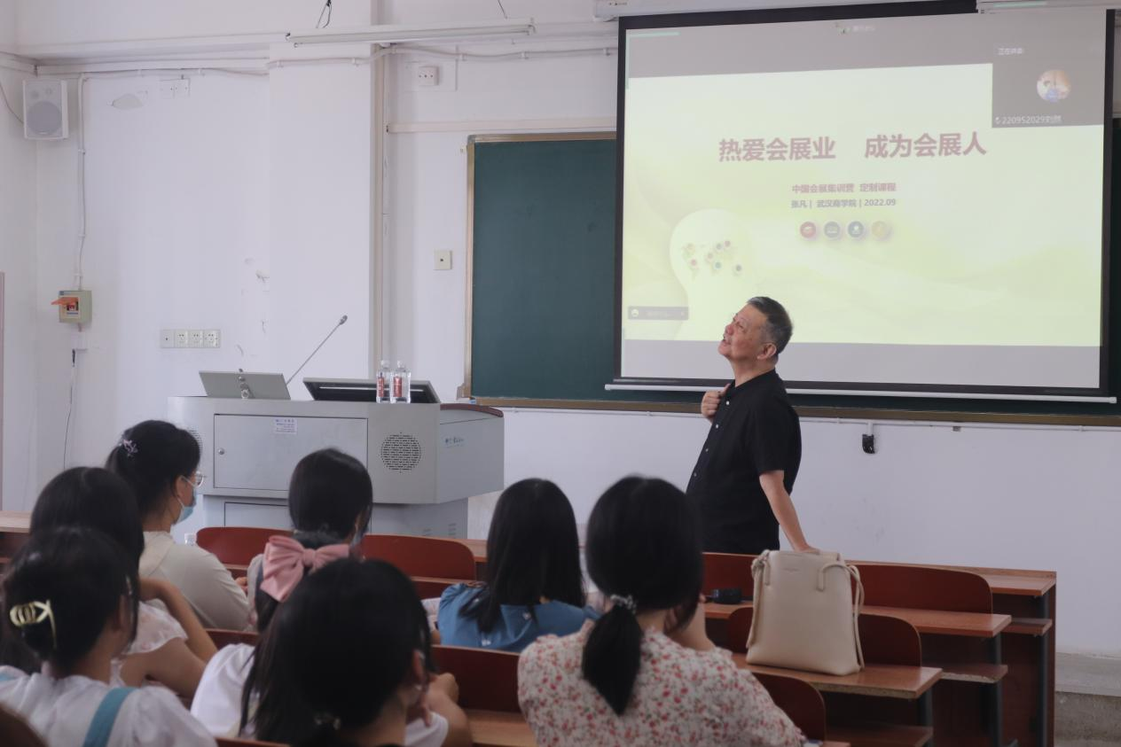 会展经济与管理教研室邀请了中国会展经济研究会统计委员会副主任、会展经济与管理专业特聘客座教授张凡,从会展业的基本概念、国内外会展基本状况、会展业的发展趋势及成为会展人才的意义四个方面,为新生们构建了会展专业基本框架。张教授介绍道,会展业是小而美的高端服务业,轻资产、重人才,创意性和包容性并行,就业面宽泛,这激发了学生浓厚的学习兴趣。张教授还结合人生阅历,循循善诱,与学生面对面交流大学学业规划,激励学生保持终身学习的动力。