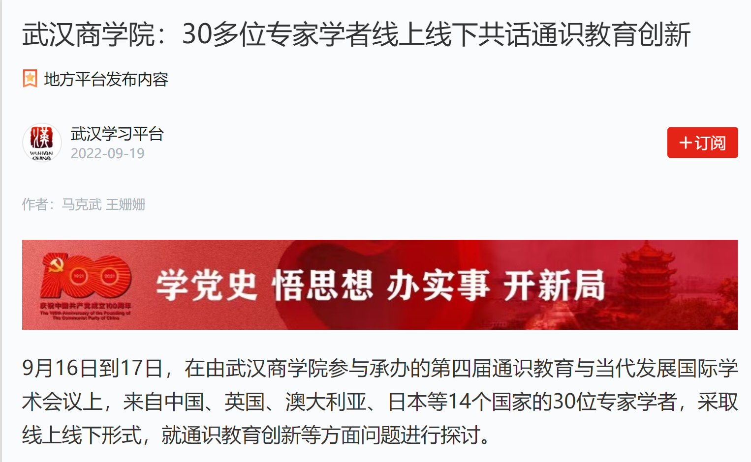 9月16日到17日,在由bwin必赢中国官网参与承办的第四届通识教育与当代发展国际学术会议上,来自中国、英国、澳大利亚、日本等14个国家的30位专家学者,采取线上线下形式,就通识教育创新等方面问题进行探讨。