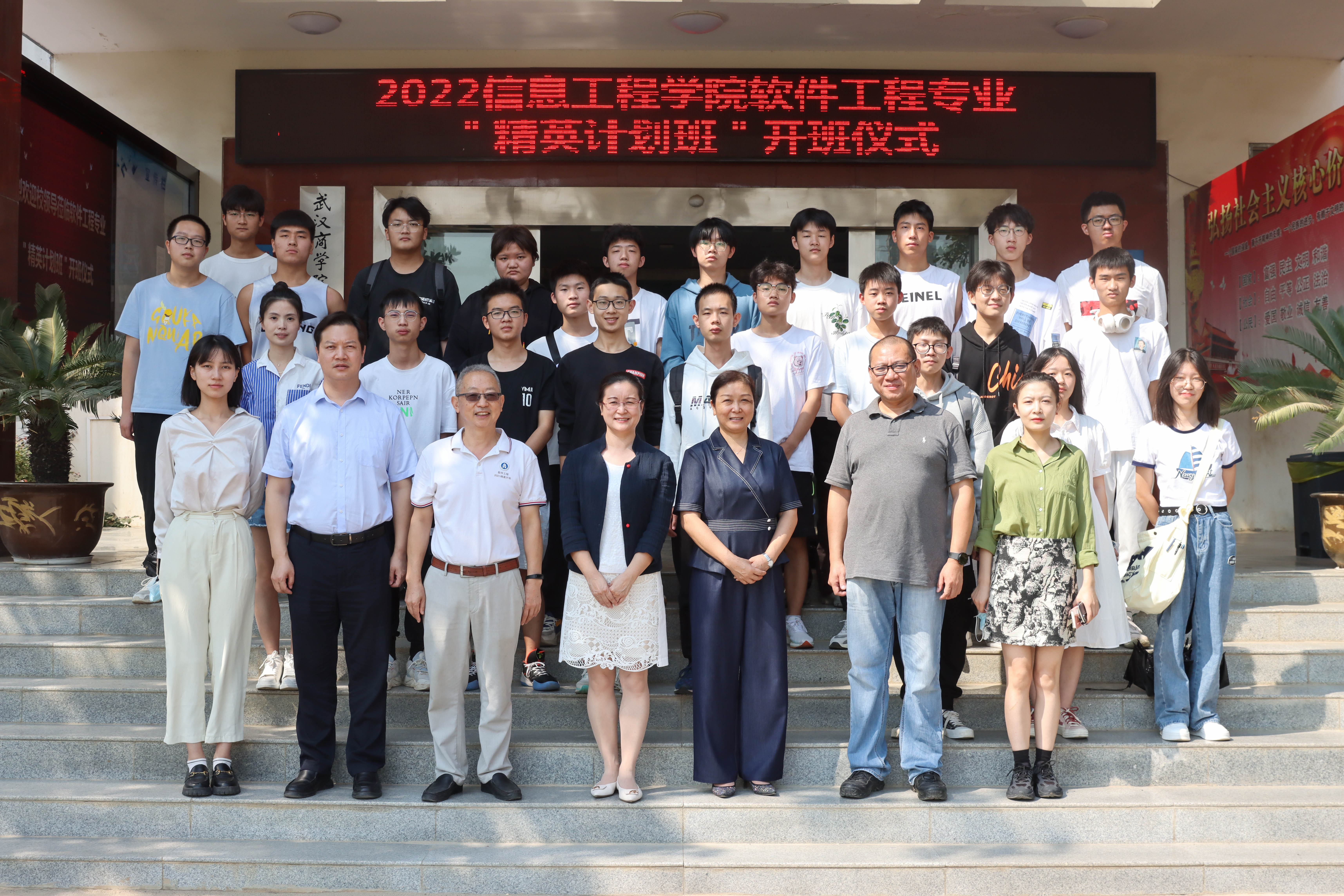 本网讯 9月30日上午,信息工程学院“2022级软件工程精英计划班”开班仪式在南2楼401会议室举行。仪式由信息工程学院副院长孔华锋主持,副校长刘佳霓、信息工程学院院长周天宏、国际教育学院院长李平、信息工程学院副书记宋云清及精英班相关负责人出席开班仪式。同时,“精英计划班”的23名新生到场参加了开班仪式。