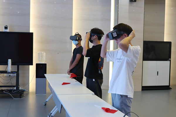 “立德树人”板块中,向俊着重介绍了我校党建工作的实施与发展。向俊表示:不断加强党对学校工作的全面领导,同时让学生党员积极参与相关实践活动,成为学生群体中具有带头引领作用的“青春航标”是我校党建工作一直以来的目标。智慧党建教育中心体验区实景沉浸式参观体验虚拟红色基地也是一大参观“热点”。智慧党建教育中心拥有着智能多屏互动系统,145个虚拟展馆,可方便同学们进一步增强对党史文化的了解,感受红色文化的魅力。在教师带领下,现场学生纷纷上前沉浸式体验智能VR设备,在虚拟场景中体验智慧党建教育中心智能化功效和智慧化成果。