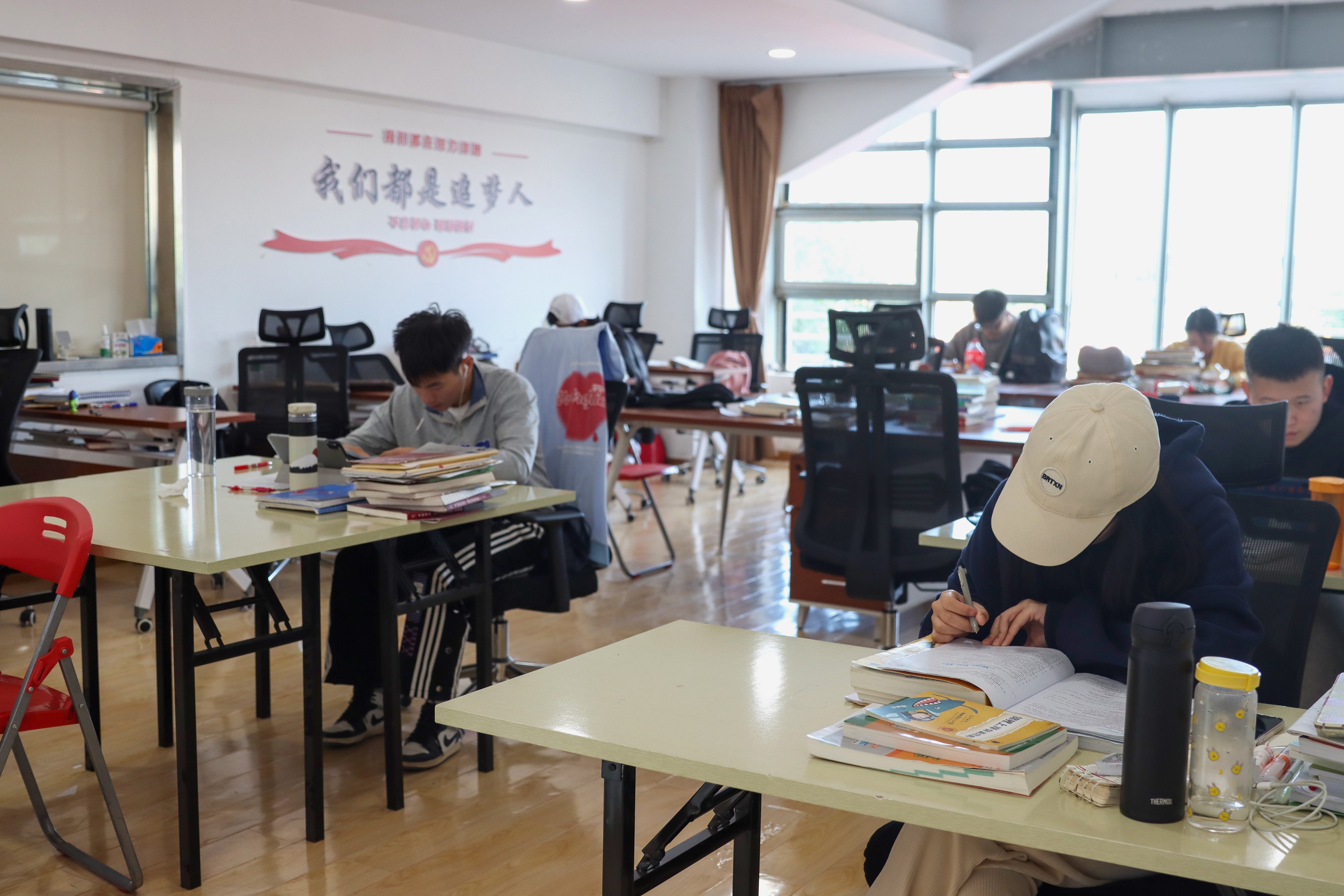 我校一直注重优良学风的建设,十分重视对考研学生的教育与服务保障工作。学校在各个地方都设置了考研自习室,整合多种资源,为考研学生和生活上提供尽可能多的便利条件。不仅有此处的考研驿站,还有北一、南一等多处的考研自习教室,北四教学楼、各学院办公楼在走廊尽头也设有自习点。
