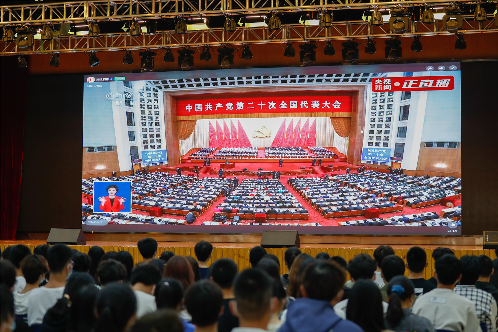 二十大开幕式当天,校领导、各职能部门副处级以上干部在学校行政楼三楼多功能厅集中收看;各学院组织师生在学院会议室通过电视、网络直播、手机等多形式多渠道,收听二十大开幕直播,认真聆听习近平总书记发表的重要讲话。