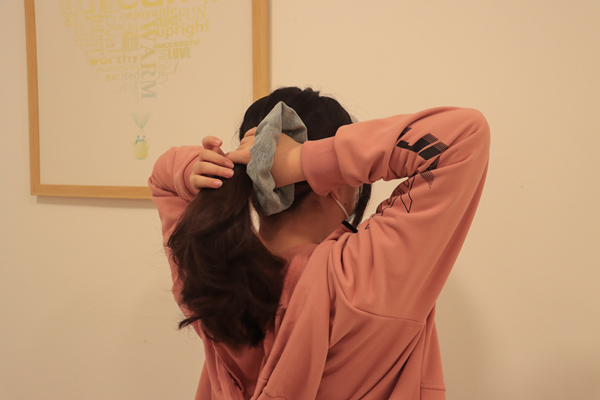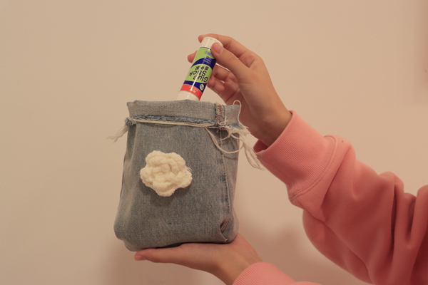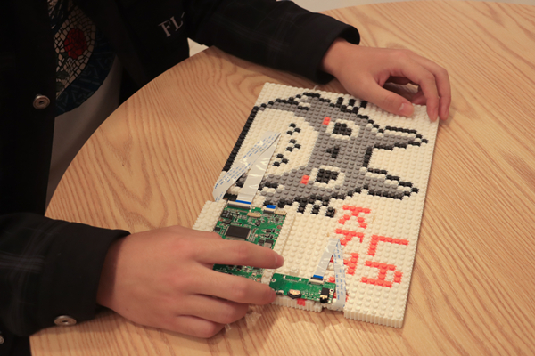 在提交作品的现场,参赛学生积极向负责人介绍自己的作品,讲述自己的创作理念。来自信息工程学院的大二学生曹盛,作品一经展出便吸引在场所有人的目光,曹盛介绍:“这是我利用废弃的笔记本屏幕制作的一个显示屏,只需要用到胶水,就能将积木和电路板拼接在它的背面,最终的成品超出了我的预期!后期,它也可以作为减少碳排放的装置。”2021级物流管理专业的韩晓玥则用牛仔裤、针线圈和旧衣服上的毛线花作为装饰品设计出了牛仔收纳袋和牛仔发圈,她说:“旧牛仔裤的改造简单易上手,活动的宗旨是‘变废为宝’,重点在于‘宝’字,改造出来的物品一定要实用,为生活增添便利。”