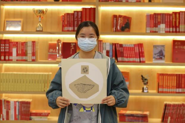 像这样精细复杂的手工拓印技艺,在现场为数不多的男生中,22级马业科学专业的李子德却做得游刃有余。纸张稍干时李子德不仅上墨均匀,还能使墨汁调至成为自己想要的颜色,横竖交叉拓印。“我经常会描硬币的花纹,听老师说这居然也是拓印的一种,才发现原来非遗文化一直都在身边!”第一个完成拓片,李子德高兴说。
