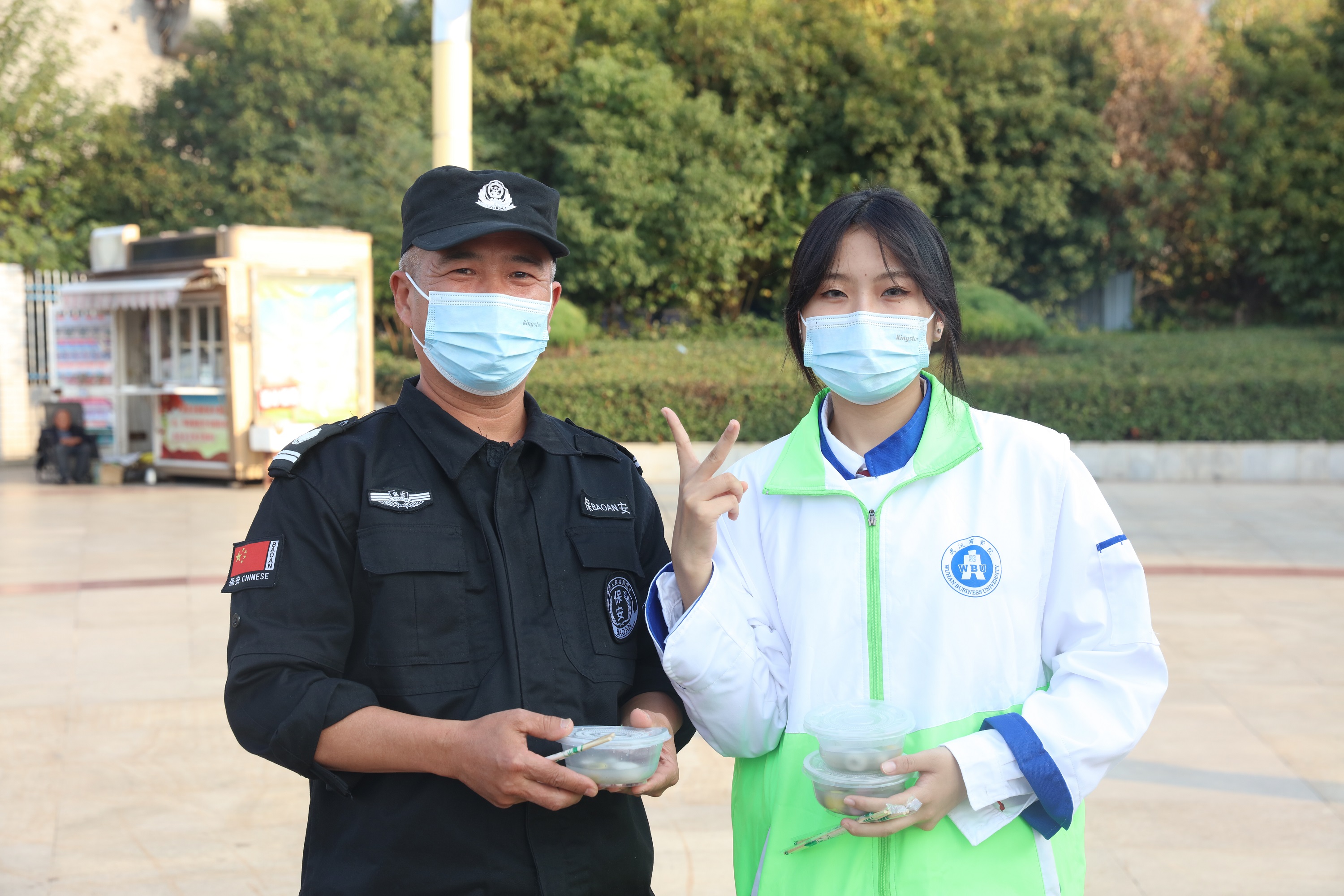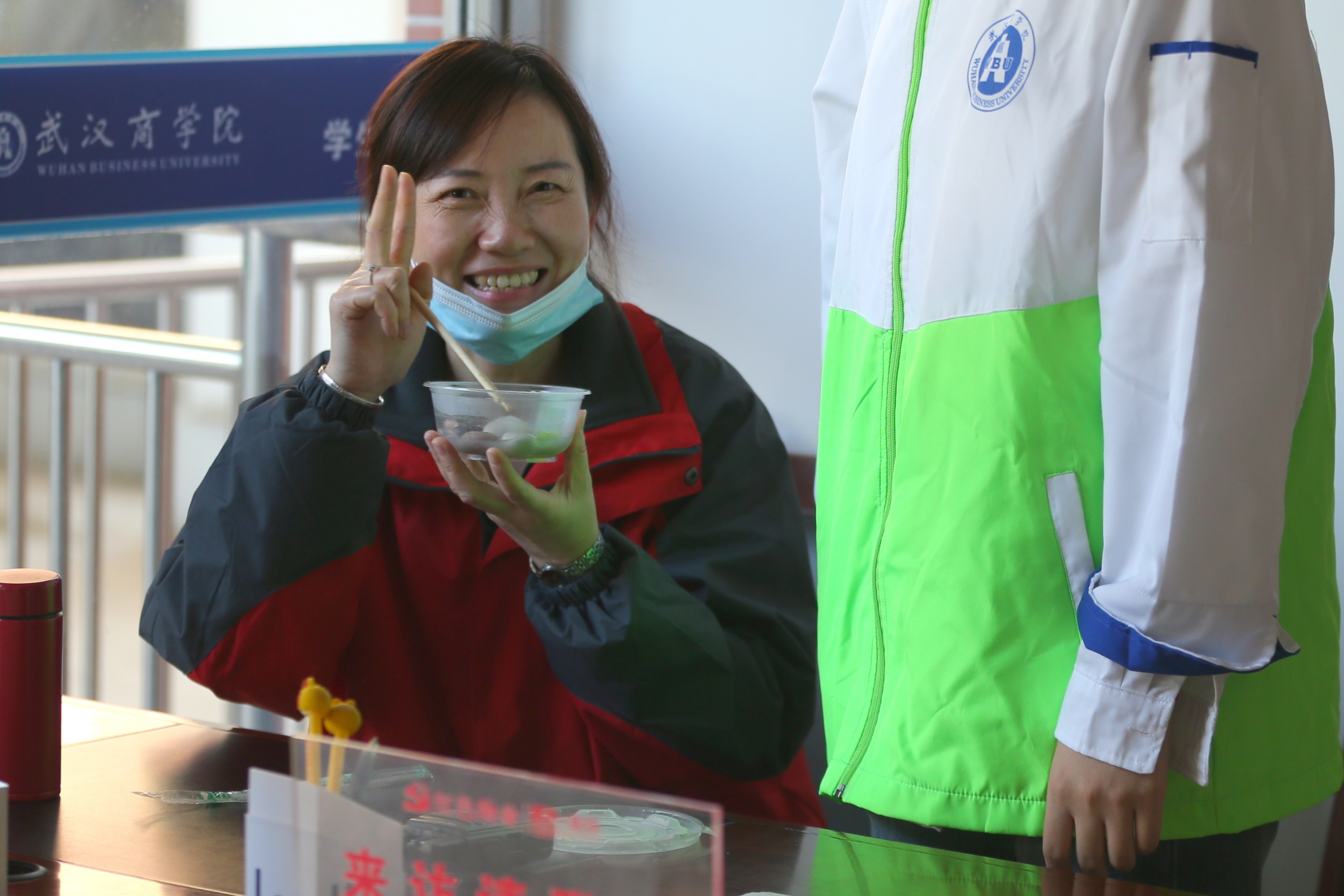 待汤圆煮好,志愿者们盛好一碗碗香甜可口、热气腾腾的汤圆,一份份地送给每一位在校的工作人员:“你们辛苦了!谢谢你们的辛苦付出,今天立冬,来碗汤圆吧!”来到学校任职四个月的保安大叔吴波来自湖北省咸宁市,是第一次在学校过立冬,一开始收到同学们亲手做的汤圆十分激动,他坦言:“没想到今年的第一碗汤圆是在学校吃到的,汤圆很好吃,吃到了学生们亲手包的汤圆心里暖暖的!”