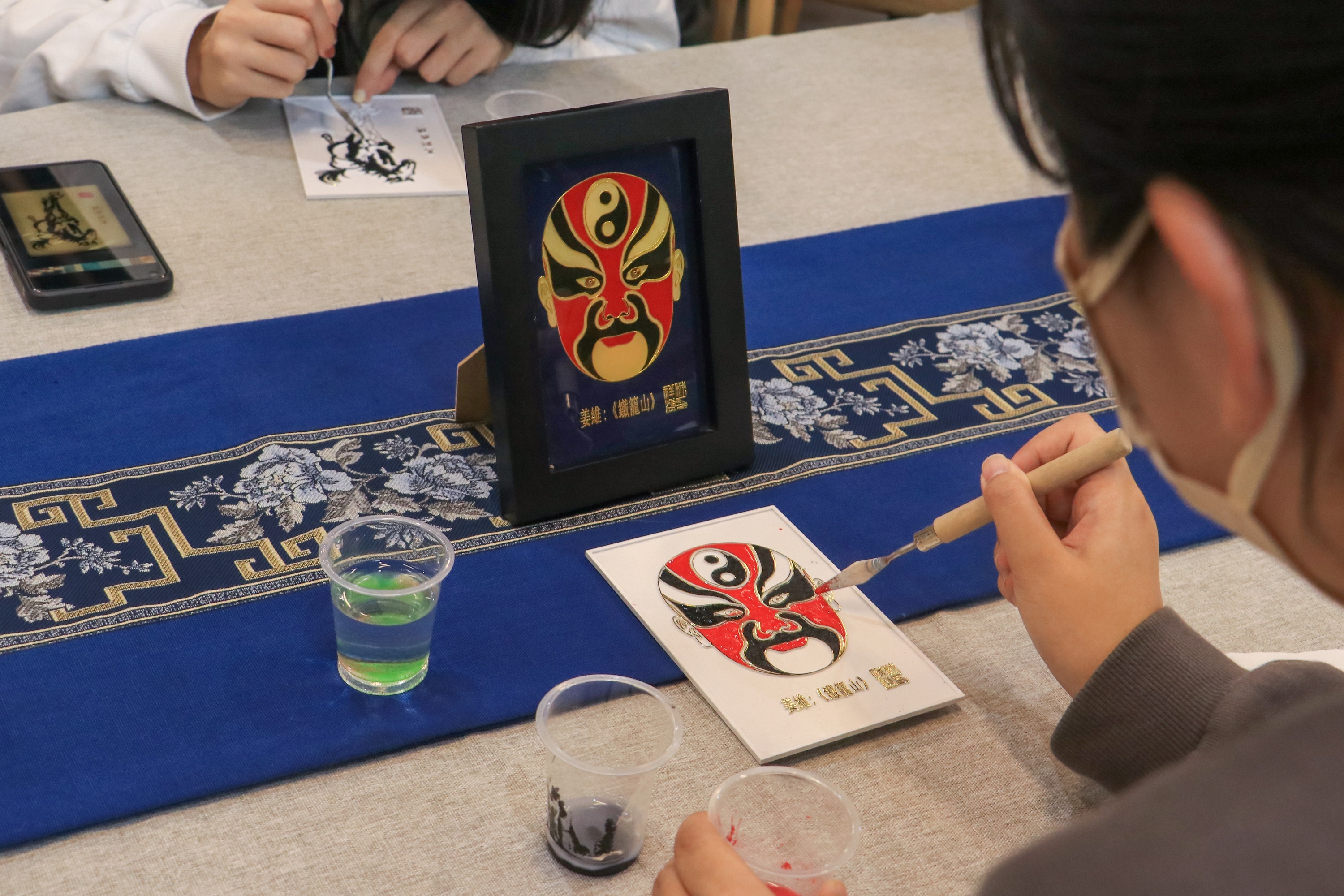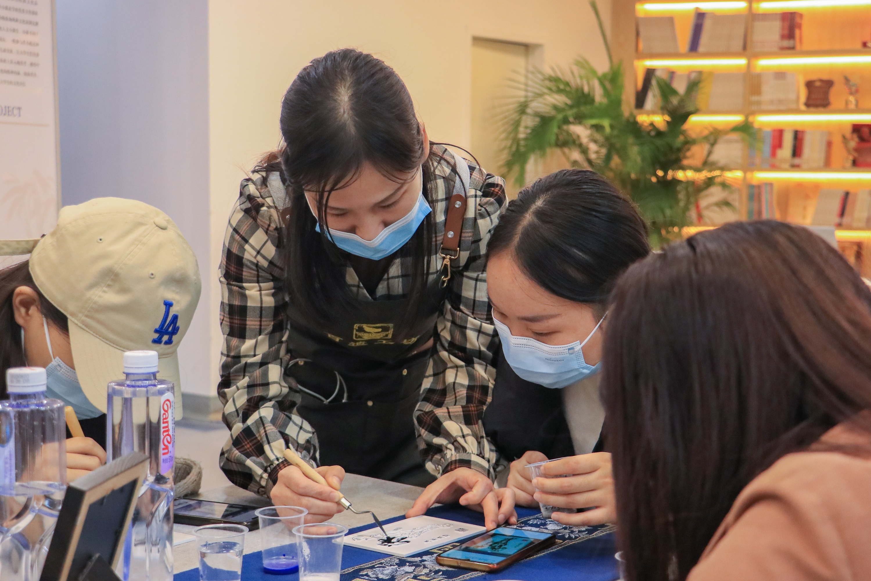 一抹一抚,尽展非遗风貌;一点一触,牵引赤忱之心。现场,由梅祥鸿老师的弟子钟文、董黎两人共同协助学生完成景泰蓝珐琅掐丝画四大制作技艺“制胎,掐丝,点蓝,烧制”中的“点蓝”一步。在场学生主动提问,热情高涨,在动手中感悟非遗文化的魅力,沉浸于景泰蓝珐琅掐丝画的美妙。