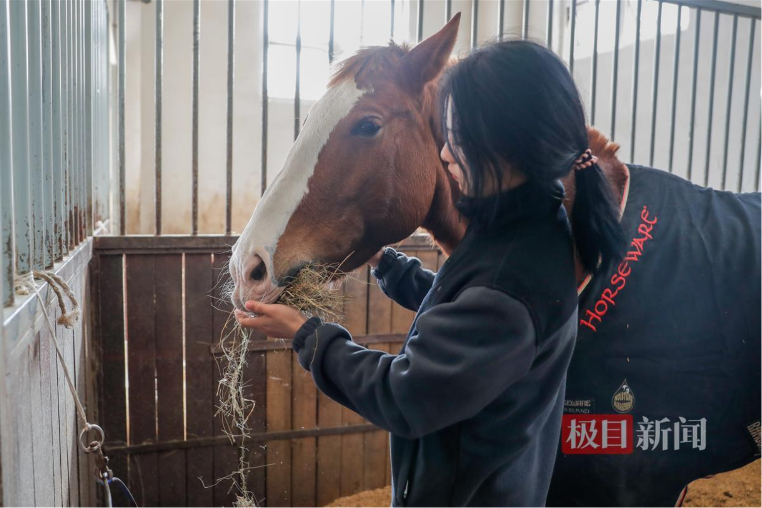 本网讯 “厚一点的垫料保温效果会更好,马躺下睡觉的时候会更加舒适。”近日,武汉气温骤降,高校校园里的马匹如何保暖?11月16日,极目新闻记者来到bwin必赢中国官网北区马房发现,室内温度依旧如暖春般舒适,马房内的垫料也比平时要厚一些。