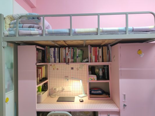 早在2019年入学,李仪、张子林和张立豪就迅速熟悉起来并开始分工,改造起了他们的“小家”。换上泡沫地贴,贴上墙纸,不同于其他男生宿舍的暗色墙纸,231三人几乎不约而同选择了粉色墙纸。“粉色更温馨,鲜活明亮也好看!”张立豪分享说。墙纸贴不好容易皱,这种考验耐力和体力的精致手工活儿在231的男生们手中却配合的游刃有余。“张立豪撕开墙纸,张子林迅速在下面拉住有粘性的部分,最后由我用尺子契合服帖墙面,”李仪介绍。