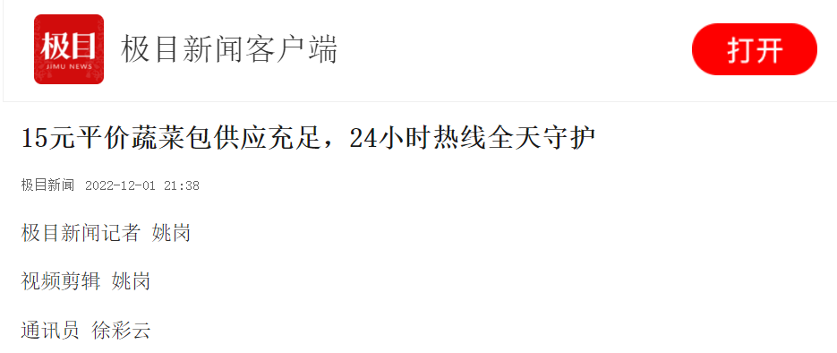 极目新闻:15元平价蔬菜包供应充足,24小时热线全天守护
