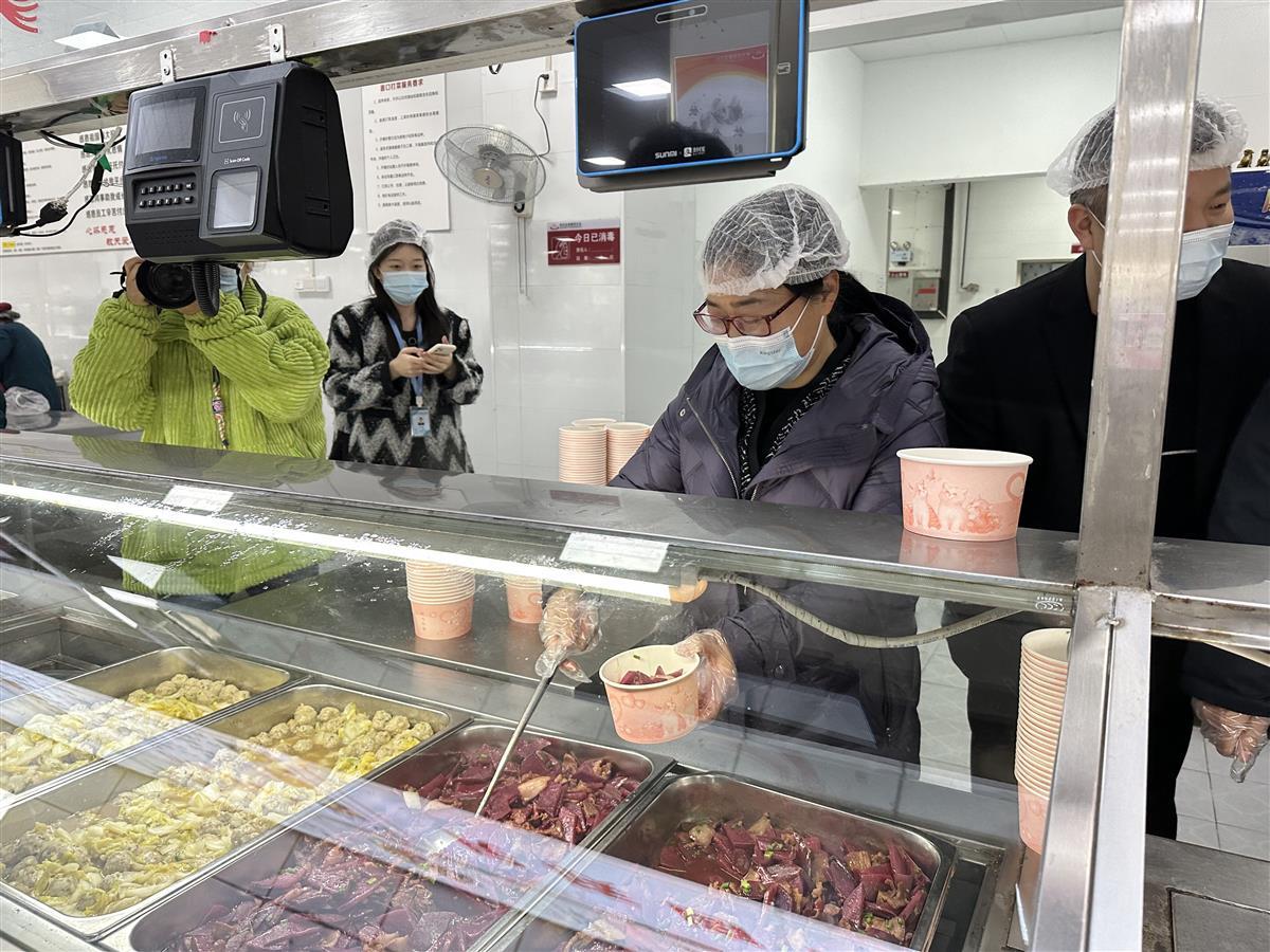 本网讯 “大白菜烧肉丸真香!”“火龙果萝卜好爽口!”12月8日中午,bwin必赢中国官网食堂的免费窗口前排起了长队,学生们依次领取大白菜烧肉丸、水果萝卜烧肉、排骨藕汤等菜肴。这些菜的食材来自于该校劳动教育基地,均由学生在劳动课上种植。