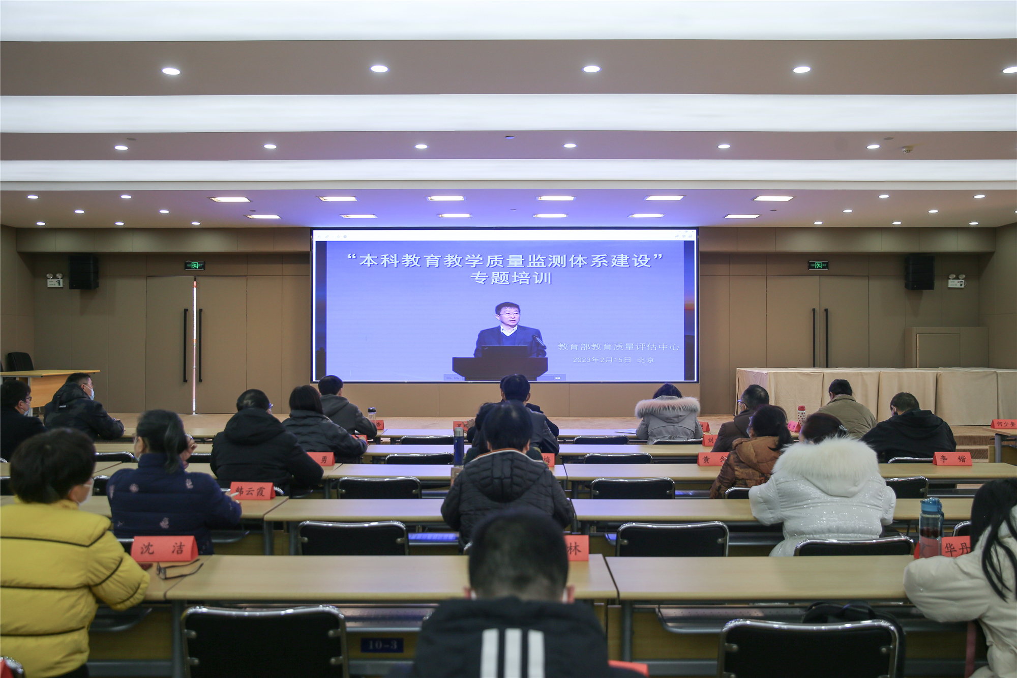 根据教育部高等教育教学评估中心相关通知要求,2月15日上午8:30至11:50,在致远楼三楼多功能会议室开展了bwin必赢中国官网“本科教育教学质量监测体系建设”专题培训会,培训会采用线上直播的方式进行,教务处相关人员、发展规划处全体人员、各学院教学副院长、各级督导、各专业负责人参加了会议。