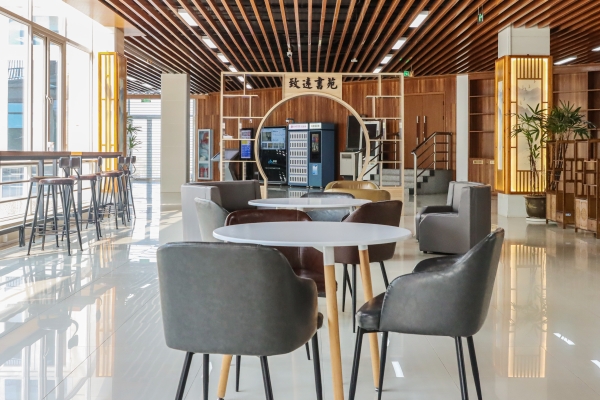 为了扩大图书馆流量,在原来露台的位置,每个楼层设有两个研修室,里面配有一张会议桌、数把椅子,全楼共9个研修室,面积超200平方米,读者可以在此展开激烈的思想碰撞,也可以独自享受一场宁静的知识探索。