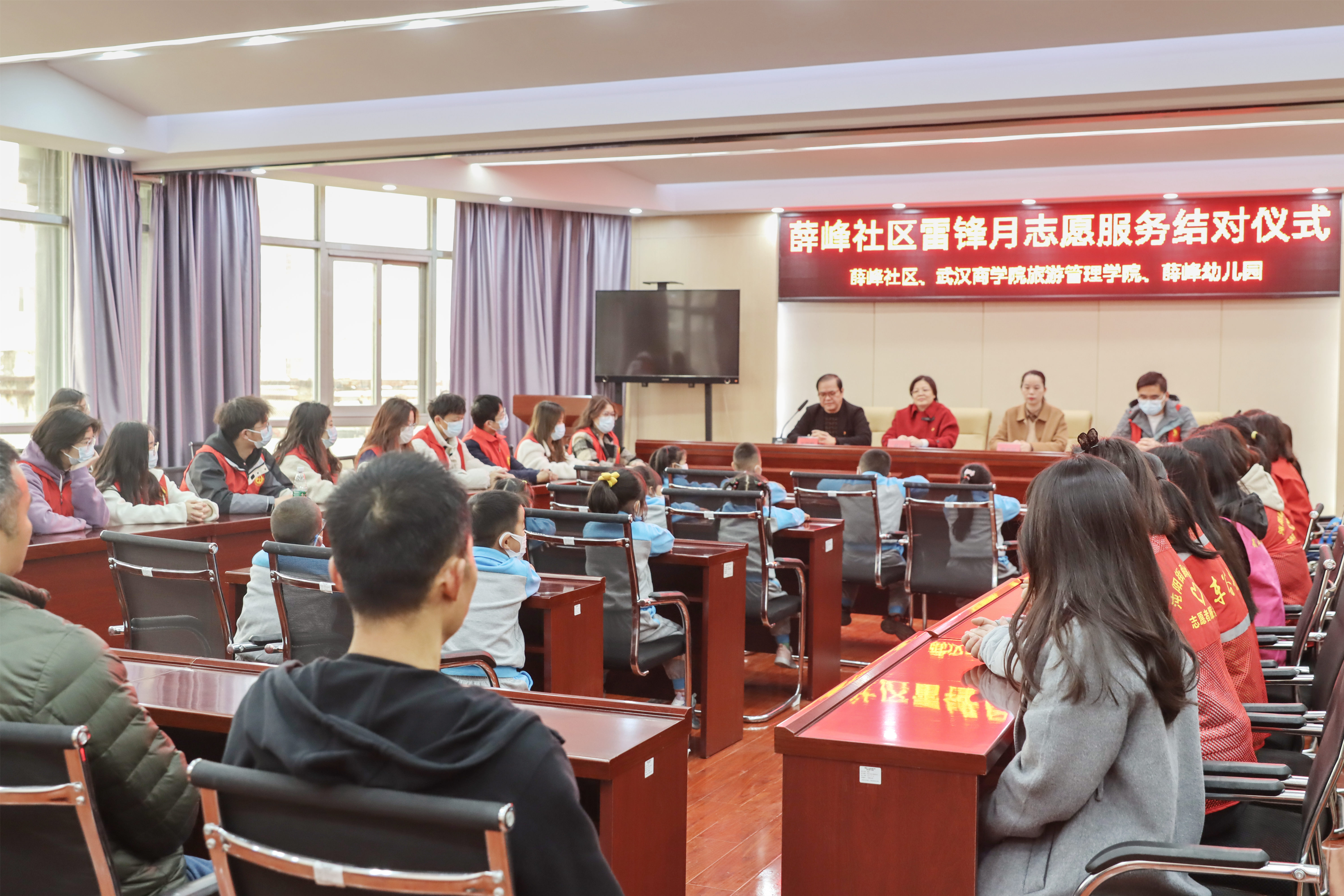 据悉,旅游管理学院青年志愿者协会已有十余年的组织历史,历年来活跃在武汉市乡村振兴第一线,获得多项省、市级奖项。仪式最后,薛峰幼儿园园长李艳妮发言,薛峰社区党委书记王四新表示:“我们会以此次活动为契机,持续深化‘聚峰助老 幸福银龄’党建品牌建设,围绕社区老年群体的所盼所需,通过结对帮扶、优化征地、整合资源等新式,不断创新养老助老服务举措,并在新征程上不断发展壮大学雷锋志愿服务队伍。”