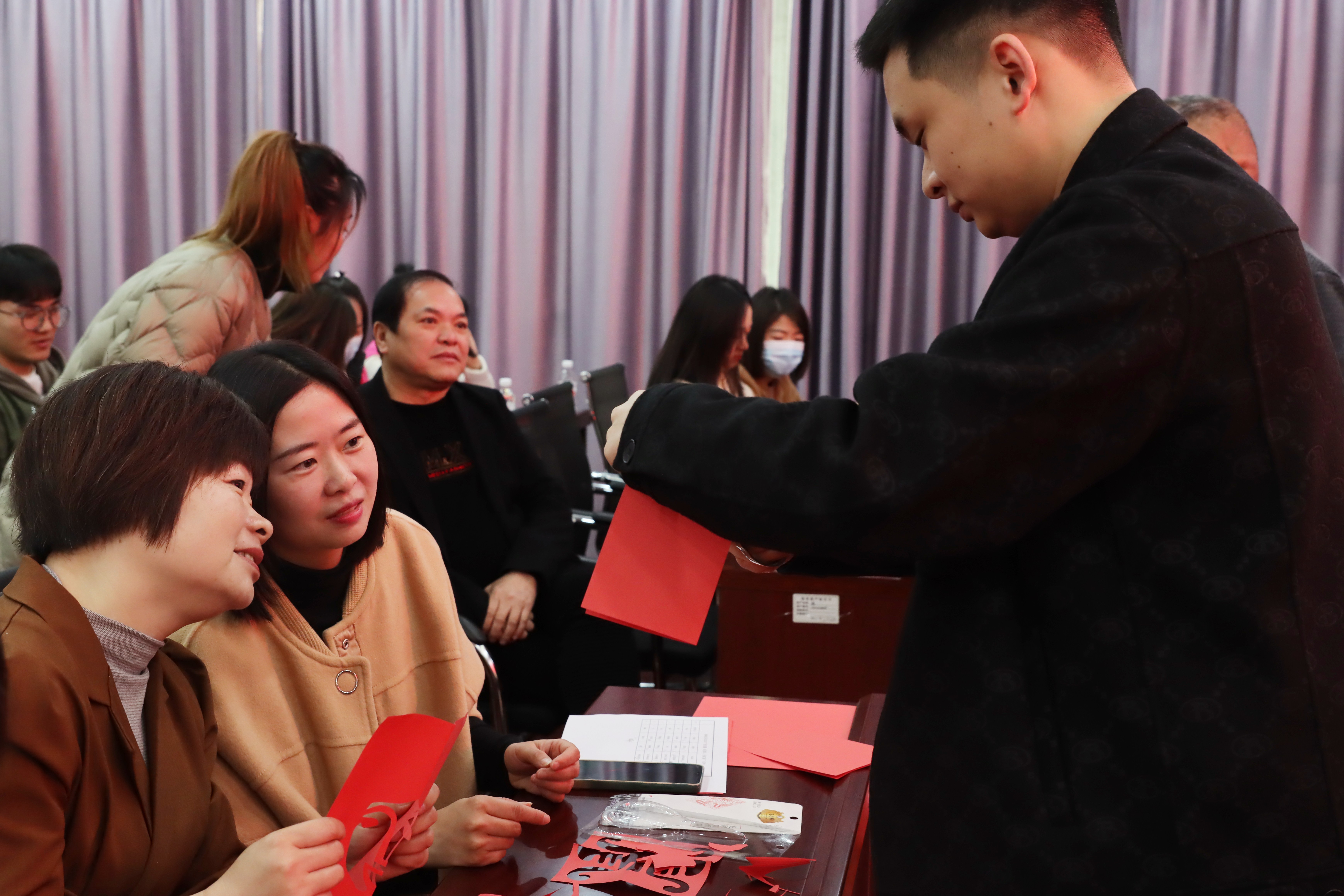 3月3日上午,薛峰社区党员群众活动中心开展了“三好家庭”评选表彰大会。我校教师周坤带着非遗文化——渚河剪纸来到活动现场。一副生动活泼的十二生肖剪纸卷轴首先呈现在居民眼前。周坤由两种不同的“寿”字剪纸展开,详细的介绍了剪纸艺术的起源与女性之间的关系,并传授剪纸方法、剪纸技巧。居民们纷纷按照所学的内容剪出了自己喜欢的花样。