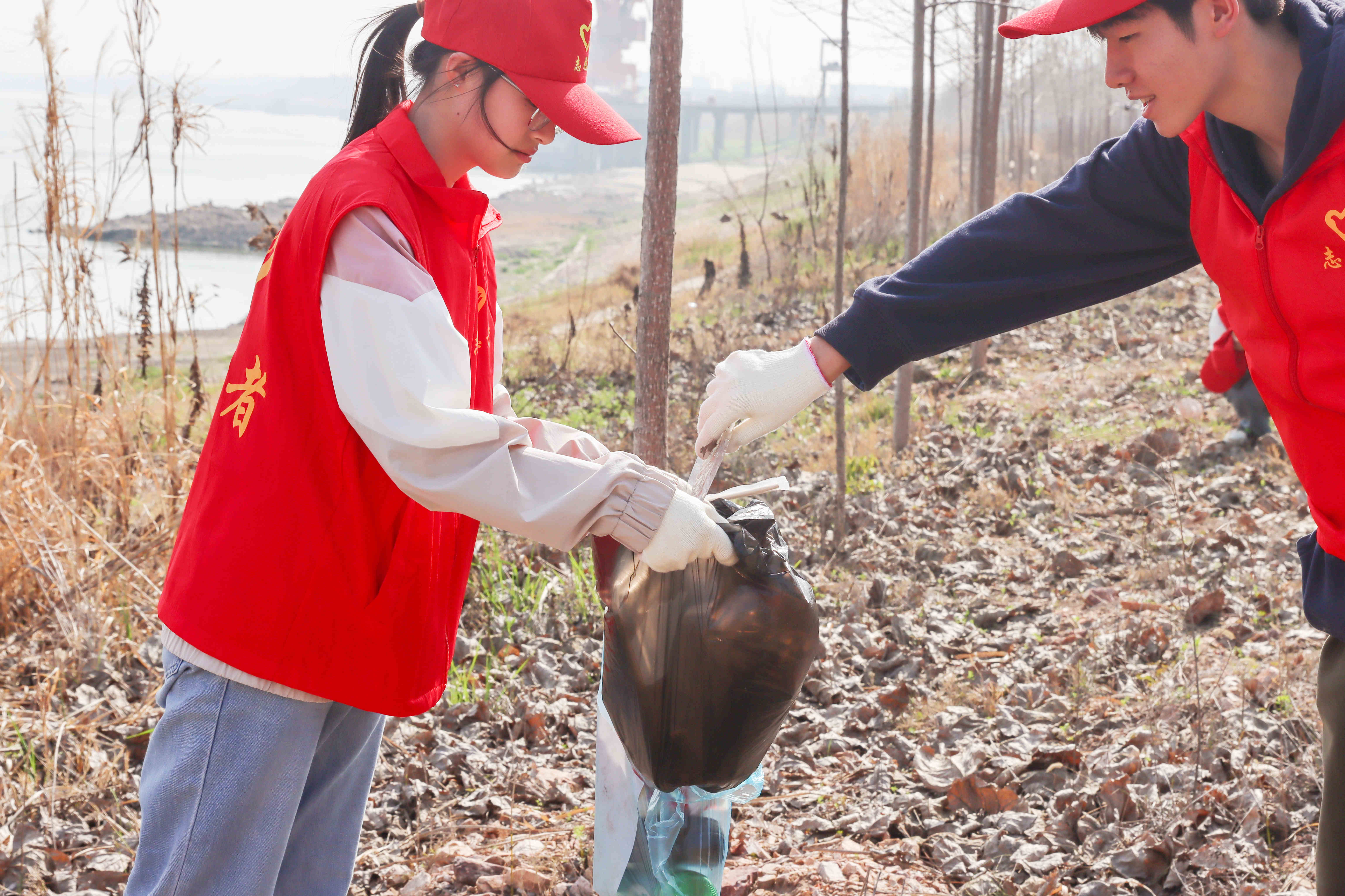 我校“两袋一心”志愿服务活动自2021年开展,志愿者们通过两个颜色塑料袋开展可回收垃圾、不可回收垃圾分捡,增强大学生的环境保护意识和社会责任心。“岸边有这么多垃圾,我们要清理干净。”“这里有好多空瓶子,快来!”堤坝上,志愿者们沿着长江一线,身穿红马甲,手拿蓝、黑两色垃圾袋,将捡到的塑料瓶、烟头、零食袋子等垃圾分为装入不同颜色的袋中,干劲十足。两人一组互相配合,极大提高了垃圾分拣的效率。
