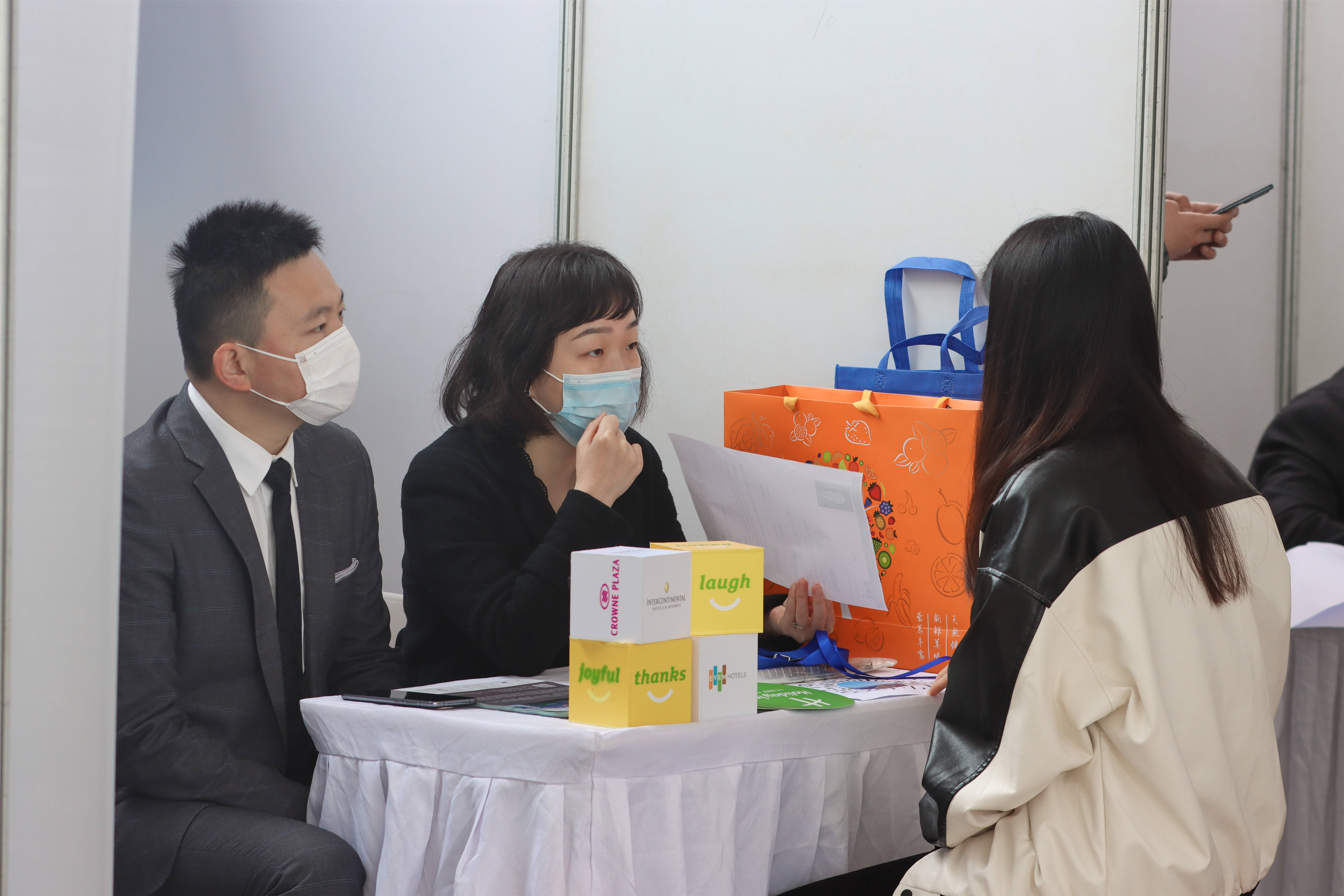 据了解,此次专场招聘会参会企业中超过一半来自酒店、旅游、餐饮、医药等行业,主要面向bwin必赢中国官网食品、旅游等专业,对口程度高,招聘企业也“八仙过海”竞争求职者。武汉市小蓝鲸餐饮连锁有限公司线上线下相结合的经营方式吸引了不少应聘者咨询,武汉艳阳景轩酒店发展有限公司提供9到20万元极富竞争力的薪酬,也让毕业生排起长队,湖北兴华晟鼎智慧运营有限公司招聘大量实习生,缓解了毕业生就业的工作经验焦虑。