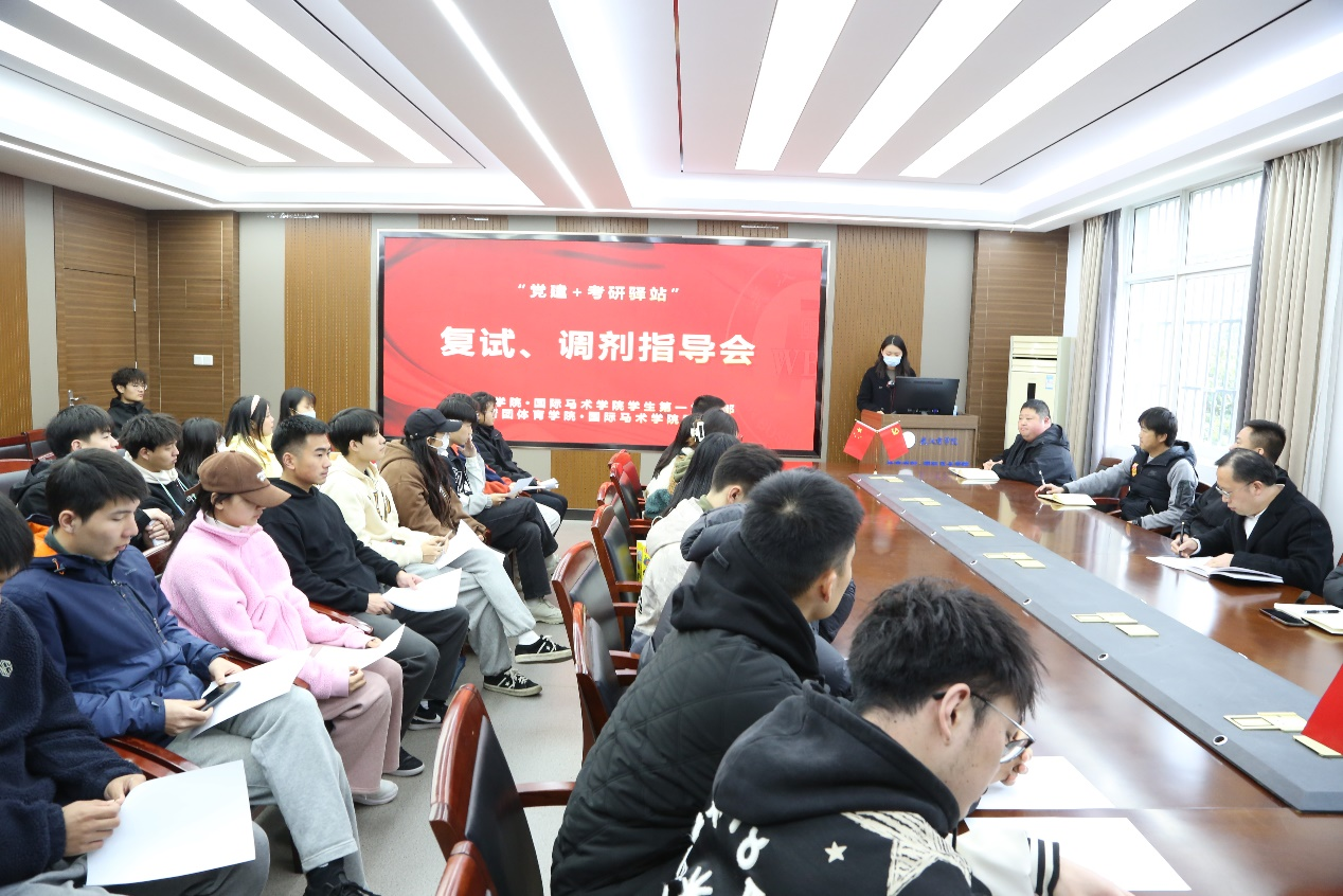 3月17日,为进一步落实党员干部下基层察民情解民忧暖民心实践活动工作要求、持续推进“党建+考研驿站”活动实效,体育学院·国际马术学院学生第一党支部、分团委召开考研复试指导会。院党委副书记余刚同志、副院长马宏俊、各系部教师、辅导员出席本次指导会,共计30名考研学生参会。分团委书记唐琳主持。