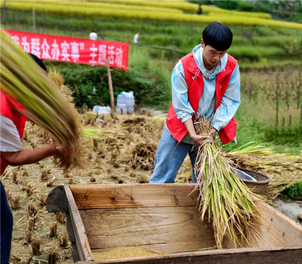 遇到农收季节,李畅忙碌的身影出现在田地里,他和其他同事一起帮助缺少劳动力的农户开展耕地、播种、施肥、抢收等帮扶活动,每个环节都有条不紊地推进。稻香扑鼻,李畅的“红马甲”与金灿灿的稻谷在阳光下交相辉映。 近期,李畅与同事忙碌的身影出现在田间地头,帮助村民收获水稻2600斤左右。“当前正值水稻收获期,大片成熟的水稻如不及时收获会影响到产量,村里青壮劳动力大多都外出务工,部分群众秋收比较困难,我们必须尽最大努力帮助群众第一时间抢收。”纳坝村第一书记李彪说。