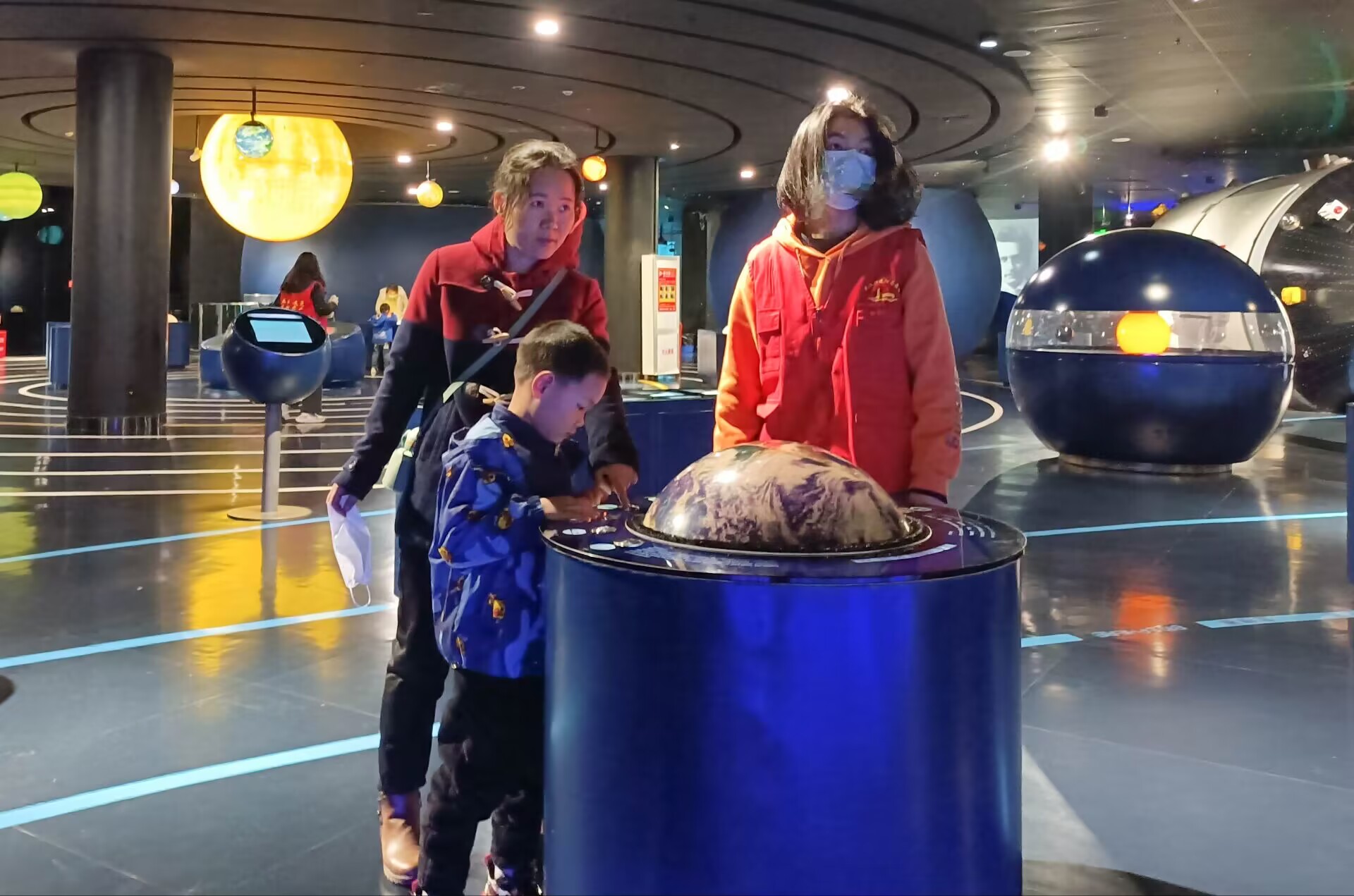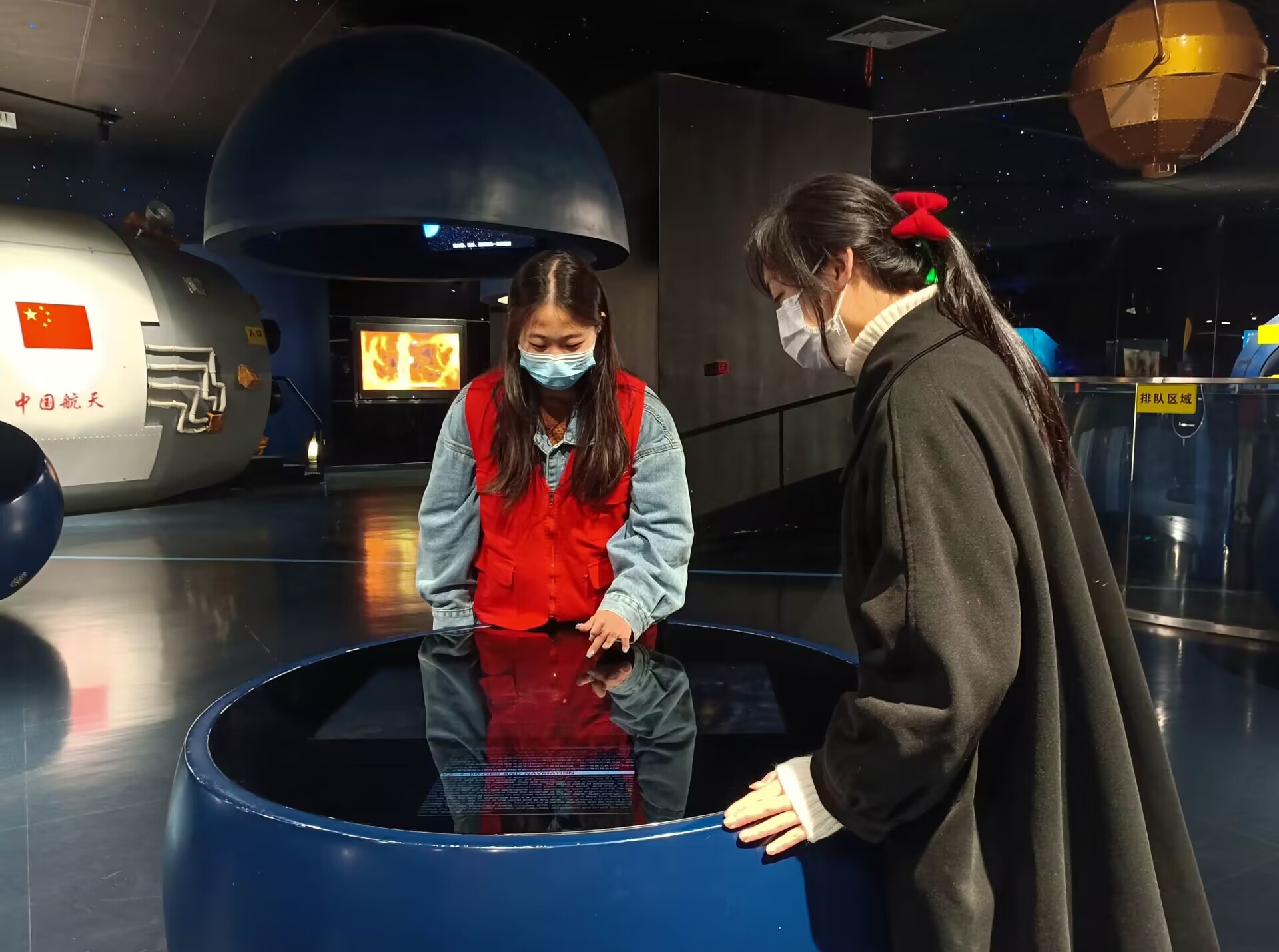志愿者们早上六点半从学校出发进行相关工作讲解和任务分配,经过一个小时的培训后,志愿者们在各服务展厅区域内就位。第一次来科技馆做志愿服务,体育学院·国际马术学院的胡婷一点也不紧张:“我很明确我的工作内容,适时为游客提供展厅展项的各种专业讲解答题,在宇宙主题展厅进行参观引导及安全保护工作,在服务游客的同时自己也能增长很多天文知识。”