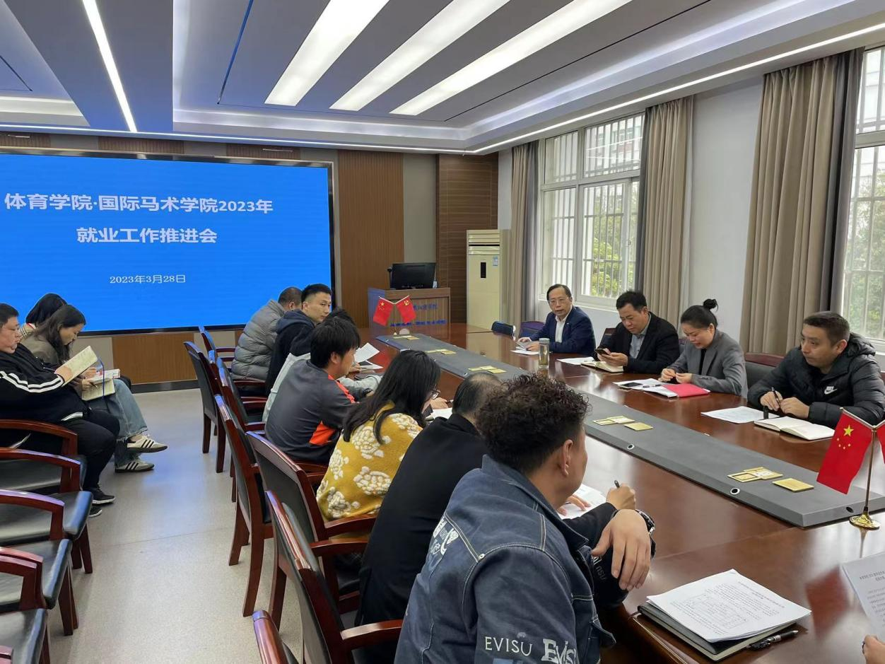 为贯彻党中央、国务院关于“稳就业,保就业”的决策部署,落实学校2023年就业工作推进会精神,促进学院2023届毕业生更高质量、更充分就业,3月28日,体育学院·国际马术学院召开2023届毕业生就业工作推进会,学院领导班子、系部负责人、全体辅导员参加,学院党委副书记余刚主持会议。