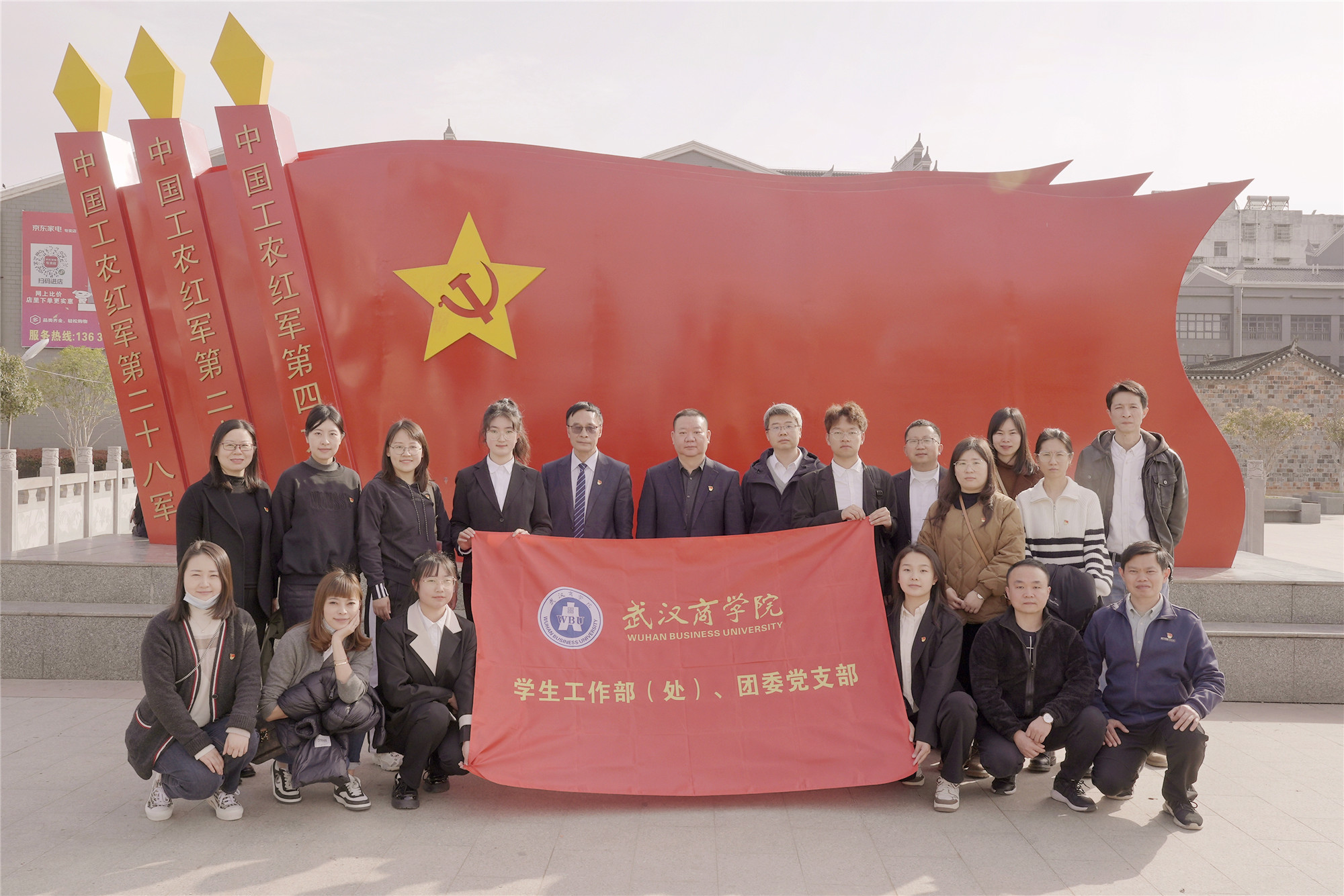 3月27日、28日,学生工作部(处)、团委联合党支部全体党员教师带领大学生创业团队代表赴红安县七里坪镇开展了一次特殊的支部主题党日活动,寻访红色足迹、挖掘红色故事、录制红色微课、助力乡村振兴。分管校领导梅德高同志以普通党员的身份参加了此次活动。