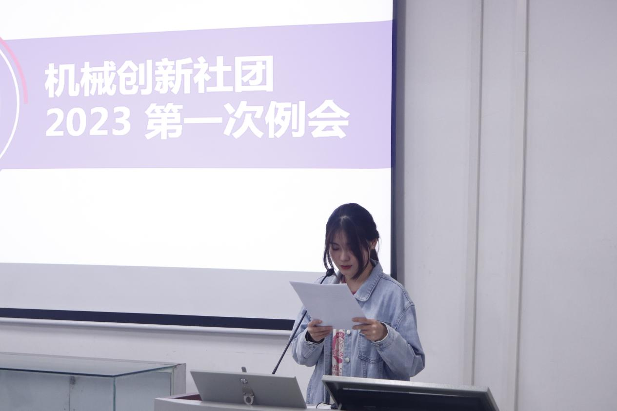 活动在雄壮的国歌、团歌中拉开帷幕,主持人蒯倩雯介绍出席活动的老师以及此次活动的目的和主题。在热烈的掌声中,机械创新社团指导老师江飞为大家带来了全国大学生先进成图技术与产品信息建模创新大赛的年度总结。