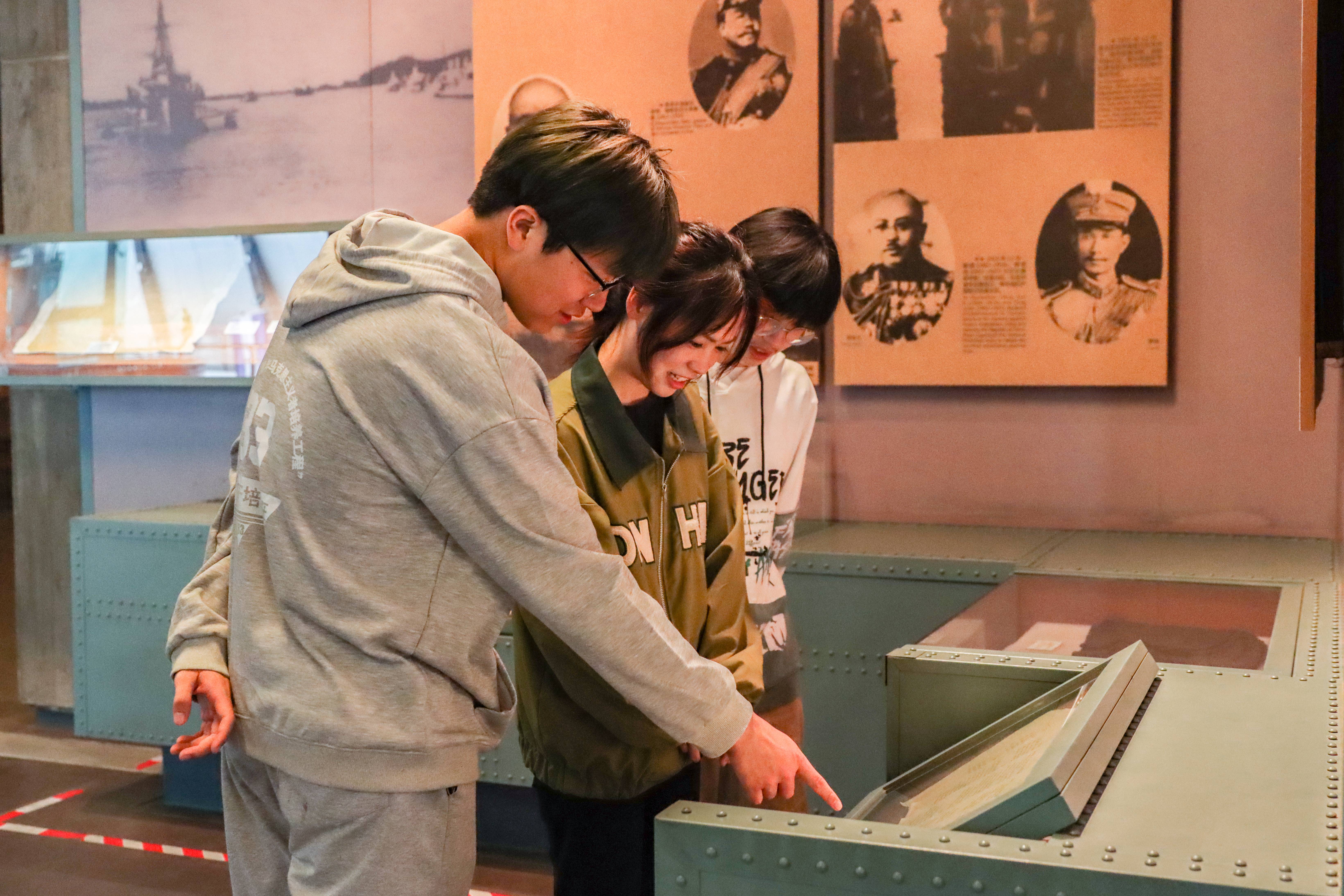中山舰博物馆坐落在武汉市江夏区金口镇长江之滨的牛头山下,是战争年代中山舰为保卫武汉英勇抗日的地方。当走到宏伟的中山舰复原舰体旁时,学生们环绕中山舰全舰参观。张奔向学生们介绍了它的故事:“中山舰在服役的26年中亲历影响了中国现代历史进程的护国运动、护法运动、孙中山广州蒙难事件、中山舰事件和武汉抗战等重大历史事件,船舰上每一条斑驳的痕迹都见证了革命先辈为国家的独立、民族的的解放百折不挠、奋斗不息的革命精神。革命先辈们艰苦奋战的精神!”经过复原后的中山舰还原了历史原貌,驾驶舱、舰长室等清晰可辨,尤其是舰体右前甲板上日本炸弹留下的直径约一米的弹洞,无比震慑。大一学生汪浩情不自禁的发出了声声感叹:“感觉自己眼前好像浮现了革命战争当时的种种场景,我们今天的幸福来之不易,更应该牢牢铭记历史,砥砺前行!”
