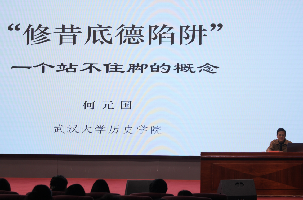本网讯 3月31日下午2:00,工商管理学院在图书馆报告厅顺利开展题为“修昔底德陷阱:一个站不住脚的概念”的致远讲坛活动。此次讲坛特邀武汉大学历史学院何元国教授出席主讲,活动由袁艺如同学主持,共计300余人参加。